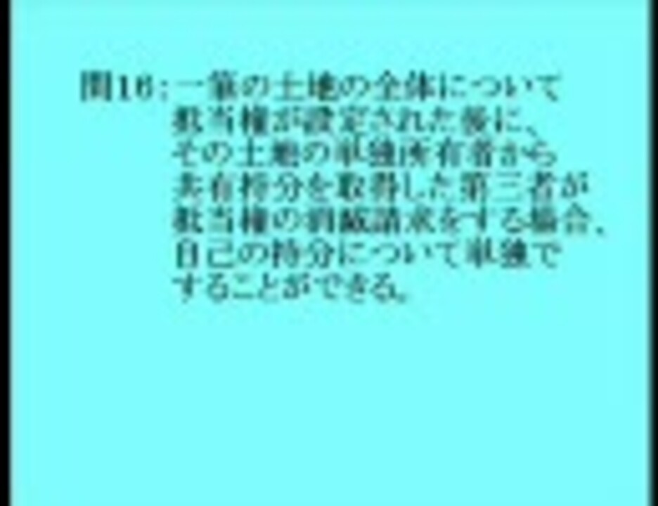過去作その1<a href="https://www.nicovideo.jp/watch/sm1665360" class="watch">sm1665360</a> その2<a href="https://www.nicovideo.jp/watch/sm1774676" class="watch">sm1774676</a> 民法の一問一答です。前2回と違って法律を学んだことがない方には意味不明な動画になっています。全部で30問あります。大学受験で法学部を目指してる方はこんなことやるんだ程度に見ていただければ参考になるかもしれません。