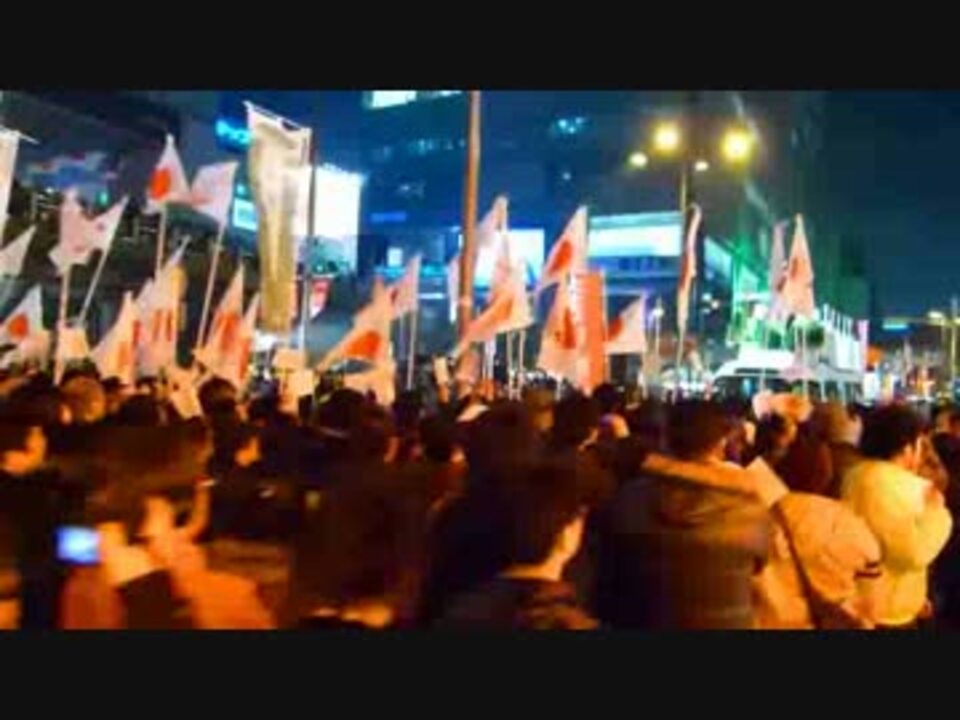 第46回衆議院議員選挙前日の2012年12月15日<br />秋葉原駅前で開催された自由民主党の演説会の様子です。<br />聴衆が各自持参した日の丸やプラカードが沢山掲げられ<br />熱気に満ちていました。<br />■FLV出力、640×360、V/460kbps、A/64kbps 35.3Mbyte<br />
