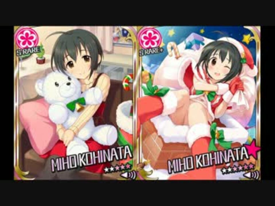 ついに出ましたね。【聖夜のプレゼント】小日向美穂ちゃんのボイス集になります。<br />5STEPガチャ、みなさんはどんな印象を持ちましたか?あまり課金しない方、頻繁に課金する方、違う回し方があるえげつない搾取・・・面白い遊び方だとオモイマス<br />無課金、微課金の方は2STEPで止めるのがいいのかな?私は3周ブン回しました(遠い目<br />前川みくボイス集(チャーミングキャット無し)→<a href="https://www.nicovideo.jp/watch/sm19469098" class="watch">sm19469098</a><br />本田未央ボイス集(SR+無し)→<a href="https://www.nicovideo.jp/watch/sm19499963" class="watch">sm19499963</a><br />渋谷凛ボイス集→<a href="https://www.nicovideo.jp/watch/sm19509158" class="watch">sm19509158</a><br />城ヶ崎莉嘉ボイス集→<a href="https://www.nicovideo.jp/watch/sm19652853" class="watch">sm19652853</a><br />小日向美穂(はにかみ乙女)ボイス集→<a href="https://www.nicovideo.jp/watch/sm19678139" class="watch">sm19678139</a><br />マイリスト→<a href="https://www.nicovideo.jp/mylist/35153281" target="_blank" rel="noopener">mylist/35153281</a>