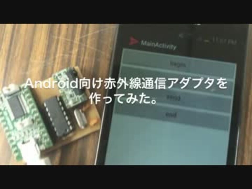 赤外線の無いAndroid端末向けにUSB赤外線アダプタを作ってみました。<br />ちなみに市販の予定は、たぶん永久にありません。(大変すぎる++;)<br /><br />メールアドレスが本物入ってますが、見ないふりをして下さいorz<br />サークルのサイトはこちら→<a href="http://denx2.tnoho.com/" target="_blank" rel="noopener nofollow">http://denx2.tnoho.com/</a><br /><br />BGMはこちらからお借りしました:<a href="https://www.nicovideo.jp/watch/sm3505467" class="watch">sm3505467</a><br />デモはカスタムROMでやってますが、USBホストという標準機能を使ってるので、Android4.0以降なら標準ROMでも動きます。root不要です。<br /><br />Q&Aページを作りました。<br /><a href="http://denx2.tnoho.com/archives/174" target="_blank" rel="noopener nofollow">http://denx2.tnoho.com/archives/174</a><br />【2013/08/06追記】C84でVer2を配布します。詳細はこちら<a href="http://denx2.tnoho.com/archives/191" target="_blank" rel="noopener nofollow">http://denx2.tnoho.com/archives/191</a>