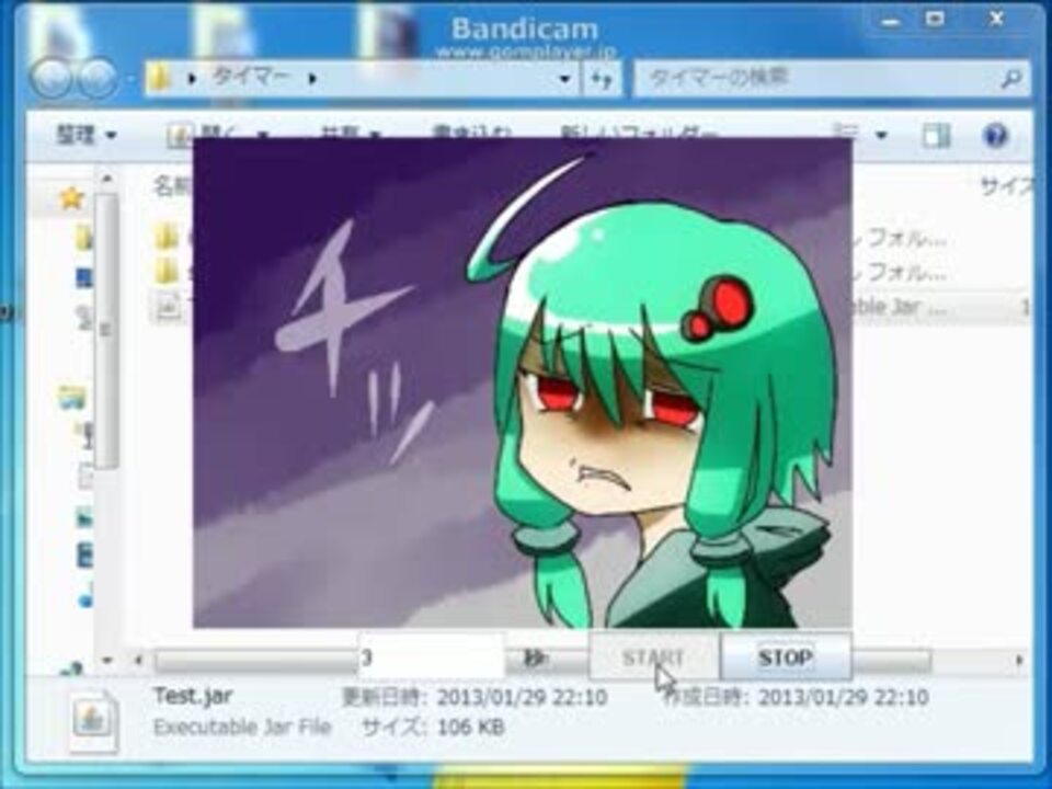 <a href="http://www.nicovideo.jp/watch/sm19930938を見て何となく作ってみましたw" target="_blank" rel="noopener nofollow">http://www.nicovideo.jp/watch/sm19930938を見て何となく作ってみましたw</a><br /><br />作ったソフトはこちら。クラフターさんならJavaは入ってると思うのでそのまま実行可能!・・・たぶん。<br />駄目だったらJava入れてください。<br />終了は画像を右クリックで<br /><font color="red"><a href="http://ll.la/VFdKO" target="_blank" rel="noopener nofollow">http://ll.la/VFdKO</a></font><br /> <br />画像と音声差し替えればほかのキャラも作れるかも、、、<br />どこかよさげなアップローダーないですか??<br /><br />[追記]<br />コメントに「ループできると良いね」とあったのでループできるようにしてみました。<br /><font color="red"><a href="http://ll.la/jHO8Y" target="_blank" rel="noopener nofollow">http://ll.la/jHO8Y</a></font><br /><br />