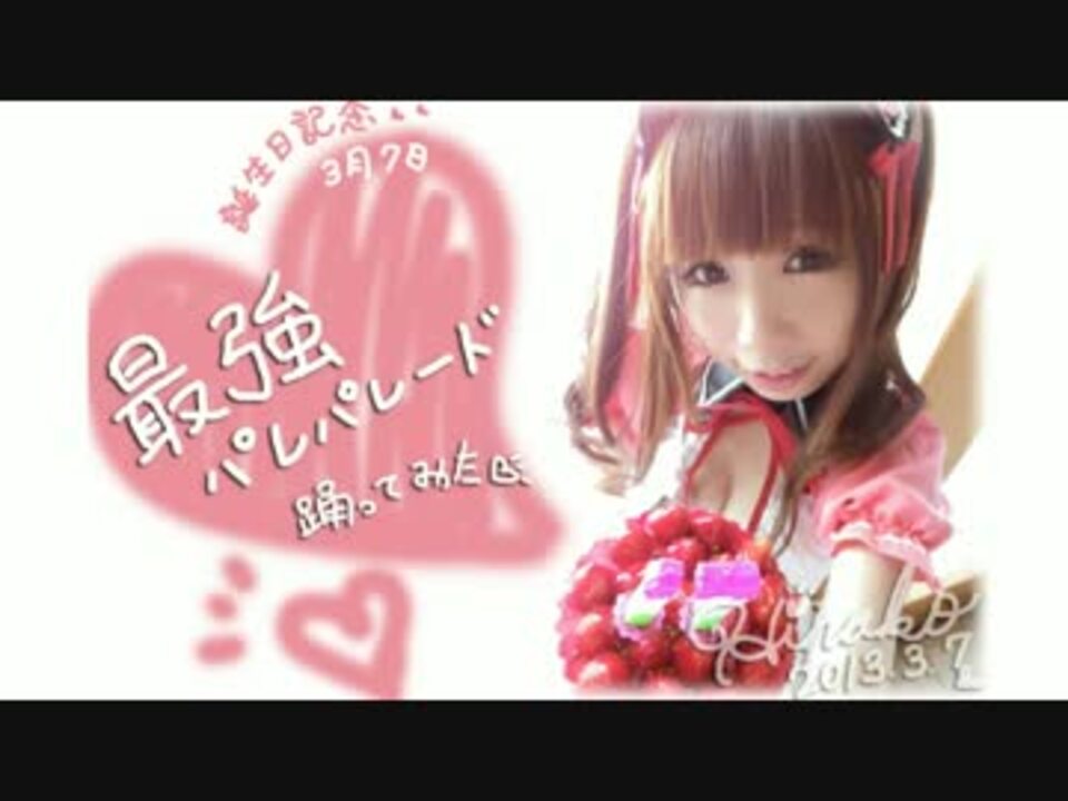 <br /><br /><b>HINAKO☆キャラメル</b><br />最強パレパレード 踊ってみた<br />誕生日記念♥ヾ(*´∀`*)ノ<br /><br /><br />明るさの調整が上手くできなくて申し訳ございません。( ;∀;) <br />今回、カメラのバッテリーが切れたので できれば再録します。<br /><br />ご視聴ありがとうございました! (≧∀≦)ノノ<br /><br /><br />♫•*¨*•.¸¸♪♫•*¨*•.¸¸♪♫•*¨*•.¸¸♪♫•*¨*•.¸¸♪<br /><br />■振り付け参考:涼宮ハルヒの激動&激奏<br />■撮影&編集: HINAKO<br />■前作: <a href="https://www.nicovideo.jp/watch/sm20225308" class="watch">sm20225308</a><br /><br /><br />【 HINAKO☆キャラメル 】<br />マイリスト❤<a href="https://www.nicovideo.jp/mylist/35698173" target="_blank" rel="noopener">mylist/35698173</a><br />Twitter❤<a href="http://twitter.com/HINAKO37" target="_blank" rel="noopener nofollow">http://twitter.com/HINAKO37</a><br />FaceBook❤<a href="https://www.facebook.com/Hinakochan37/" target="_blank" rel="noopener nofollow">https://www.facebook.com/Hinakochan37/</a><br />