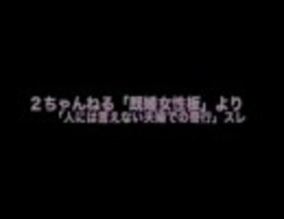 鬼女の鬼女による鬼女のための動画を作ってみるテスト。2ちゃんねる「既婚女性板」の「人には言えない夫婦での奇行」スレから。第2弾「懐かしの昭和」→<a href="https://www.nicovideo.jp/watch/sm2114487" class="watch">sm2114487</a>