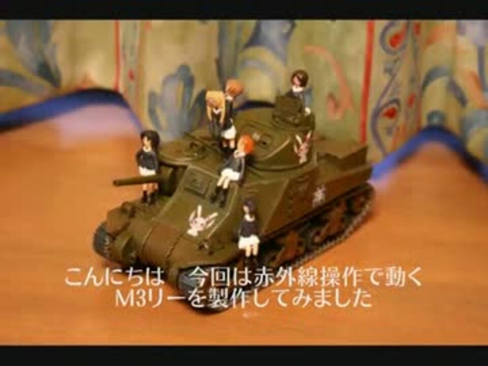 ガルパンの影響で今回は1/35のM3リーをラジコン(赤外線操作)に改造してみました。<br />市販品のラジコン戦車キットでは好きな車両がないので(一番好きな車両はⅢ号戦車)既存のキットを改造することにしました。<br />使用キットはアカデミーの1/35M3リー タミヤのものより新しいので基本的には良いのですがリベットとボルトの区別がなかったり位置が一部間違っていたりします。あと車体組立がちょっと大変。<br />白旗はサーボモータで掲揚するようになっておりバトル時被弾すると掲揚するようになっています。<br /><font color="red">(2015/2/25追記)本動画を添付した投稿が「ガールズ&パンツァーRADIO ウサギさんチーム、訓練中!」第2回(2/13)で採用していただけました!</font>