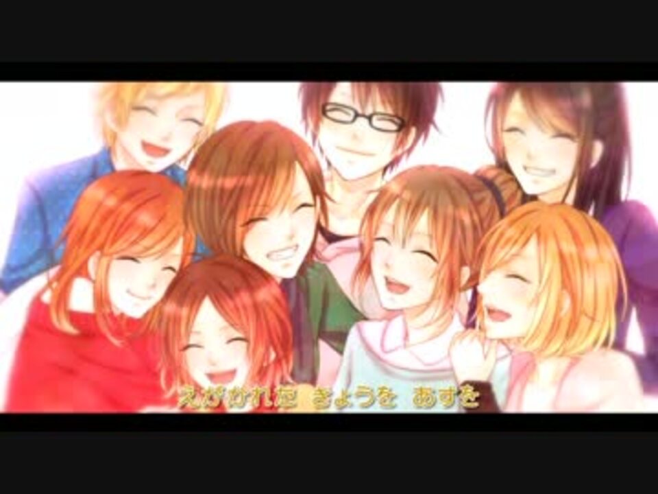 <font color="#afeeee"> かたちを つなぎあわせて <br />のぞみをうんで それは<br />また かたちへと かわる</font><br /><br />原曲 <a href="https://www.nicovideo.jp/watch/sm16999365" class="watch">sm16999365</a><br /><br />歌<br /><font color="#87cefa">awoi* <a href="https://www.nicovideo.jp/mylist/25393007" target="_blank" rel="noopener">mylist/25393007</a></font><br /><font color="#d8ba20">きゅぅにゃん co556649</font><br /><font color="#ffa500">yokone <a href="https://www.nicovideo.jp/mylist/12210244" target="_blank" rel="noopener">mylist/12210244</a></font><br /><font color="#ee82ee">cacico <a href="https://www.nicovideo.jp/mylist/34797874" target="_blank" rel="noopener">mylist/34797874</a></font><br /><font color="#1648e0">NANA <a href="https://www.nicovideo.jp/mylist/17871746" target="_blank" rel="noopener">mylist/17871746</a></font><br /><font color="#dc143c">AINE <a href="https://www.nicovideo.jp/mylist/23472633" target="_blank" rel="noopener">mylist/23472633</a></font><br /><font color="#3cb371">もちすけ <a href="https://www.nicovideo.jp/mylist/23279832" target="_blank" rel="noopener">mylist/23279832</a></font><br /><font color="#8b008b">しゅわ <a href="https://www.nicovideo.jp/mylist/24527594" target="_blank" rel="noopener">mylist/24527594</a></font><br /><br />スペシャルサンクス:<font color="#d2691e">友人 <a href="https://www.nicovideo.jp/mylist/31708596" target="_blank" rel="noopener">mylist/31708596</a></font><br />MIX:<font color="#ff7f50">濠刹 <a href="https://www.nicovideo.jp/mylist/18317791" target="_blank" rel="noopener">mylist/18317791</a></font><br />イラスト:<font color="#daa520">LUCHI <a href="https://www.nicovideo.jp/mylist/22824305" target="_blank" rel="noopener">mylist/22824305</a></font><br />動画:<font color="#228b22">けいぢ <a href="https://www.nicovideo.jp/mylist/34538600" target="_blank" rel="noopener">mylist/34538600</a></font>