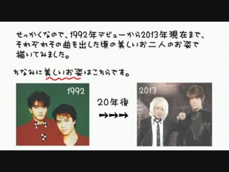 Part1【<a href="https://www.nicovideo.jp/watch/sm7271123" class="watch">sm7271123</a>】Part2【<a href="https://www.nicovideo.jp/watch/sm8654124" class="watch">sm8654124</a>】<br />デビュー曲1992年11月26日リリース『Virgin Emotion』から<br />現時点最新シングル2013年7月17日リリース『JOY TRAIN』まで全CDシングル曲&カップリング曲で一枚ずつ<br />計44枚を○○先生風もしくは○○作品風という形でひとり遊びしてるようです<br />恐ろしい事にひみつの絵師本人動画として絵を描き始め5年目に突入しても今だ安いマウス一個...自称マウサーを貫いてます<br />(ここまで描かれたら自分(編集)も「もういいかげんペンタブ買え」とは二度と言いません...)<br /><br />10秒前後しか尺がないのに「やっぱり曲はその曲でしたいのぉ~」という無理なお願いを快く聞いてくださった音師(mawariさん)に感謝<br /><br />ひみつの絵師シリーズ【<a href="https://www.nicovideo.jp/mylist/23755654" target="_blank" rel="noopener">mylist/23755654</a>】使った絵【<a href="https://seiga.nicovideo.jp/clip/966869" target="_blank" rel="noopener">clip/966869</a>】