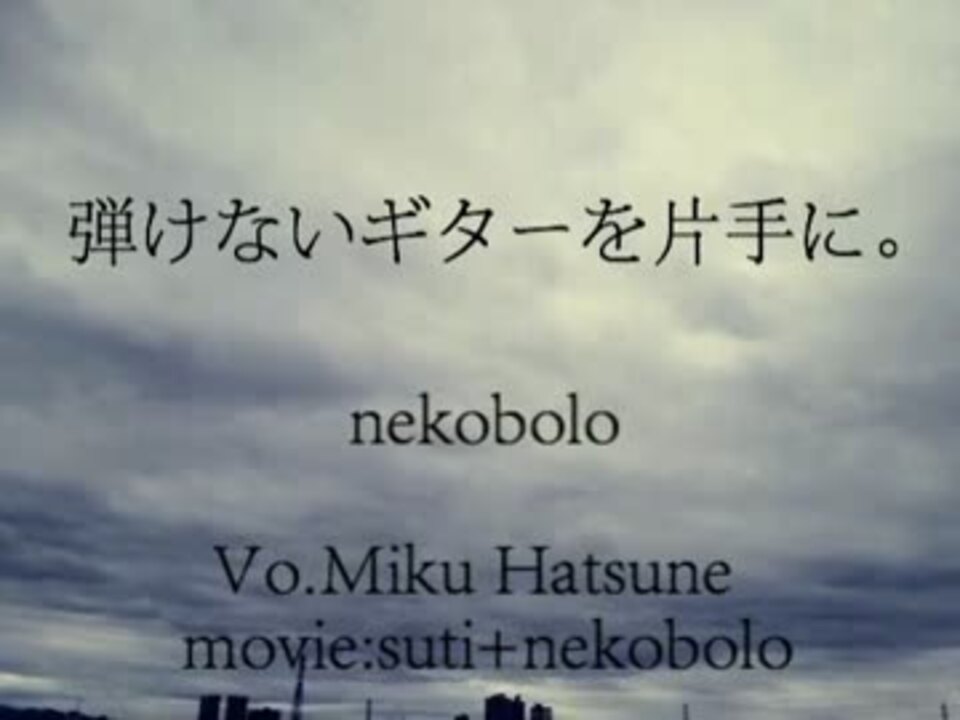 アコースティックギターによる多重録音です。<br />演奏の都合で原曲の印象と異なる場合があります。<br /><br />■カラオケ音源:<a href="http://piapro.jp/t/d-Aa" target="_blank" rel="noopener nofollow">http://piapro.jp/t/d-Aa</a><br /><br /><font color="#0000ff">【原曲情報】</font><br />■【初音ミク】弾けないギターを片手に。【オリジナル曲】 / ねこぼーろ:<a href="https://www.nicovideo.jp/watch/sm19007860" class="watch">sm19007860</a><br /><br />■<font color="#0000ff">ボカロ演奏マイリスト</font>:<a href="https://www.nicovideo.jp/mylist/30247452" target="_blank" rel="noopener">mylist/30247452</a><br />■<font color="#0000ff">その他演奏マイリスト</font>:<a href="https://www.nicovideo.jp/mylist/32438229" target="_blank" rel="noopener">mylist/32438229</a><br /><br /><font color="#00aa00">その他詳しくは投稿者プロフィール(<a href="https://www.nicovideo.jp/user/16099682" target="_blank" rel="noopener">user/16099682</a>)をご覧下さい。</font><br /><font color="#ffffff">(検索用:フォークギター acoustic VOCALOID)</font>