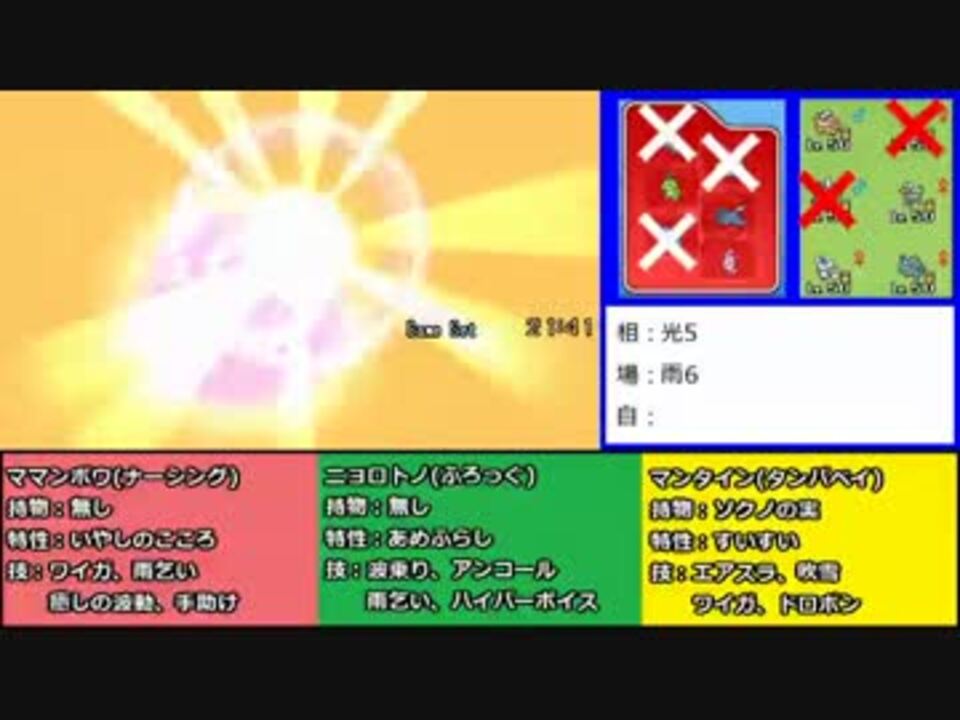 『7:雨』<br /><br />さて、第5回無くなった分までトリプルの世界をお楽しみください♪<br /><br />自分のコミュ→co1763223<br />6:彷徨う蒼き弾丸(<a href="https://www.nicovideo.jp/watch/sm22489158" class="watch">sm22489158</a>)←←○→8:相棒(<a href="https://www.nicovideo.jp/watch/sm22563119" class="watch">sm22563119</a>)<br />マイリスト→<a href="https://www.nicovideo.jp/mylist/39299210" target="_blank" rel="noopener">mylist/39299210</a>、前シリーズ(BW2)→<a href="https://www.nicovideo.jp/mylist/32657741" target="_blank" rel="noopener">mylist/32657741</a>、(BW)→<a href="https://www.nicovideo.jp/mylist/28722622" target="_blank" rel="noopener">mylist/28722622</a><br />前語り→<a href="#" class="seekTime" data-seekTime="0:00" onclick="seekNicoPlayer('#0:00'); return false;">#0:00</a><br />第一試合:選出→<a href="#" class="seekTime" data-seekTime="1:24" onclick="seekNicoPlayer('#1:24'); return false;">#1:24</a>、対戦→<a href="#" class="seekTime" data-seekTime="2:30" onclick="seekNicoPlayer('#2:30'); return false;">#2:30</a><br />第二試合:選出→<a href="#" class="seekTime" data-seekTime="13:31" onclick="seekNicoPlayer('#13:31'); return false;">#13:31</a>、対戦→<a href="#" class="seekTime" data-seekTime="14:15" onclick="seekNicoPlayer('#14:15'); return false;">#14:15</a><br />第三試合:選出→<a href="#" class="seekTime" data-seekTime="26:17" onclick="seekNicoPlayer('#26:17'); return false;">#26:17</a>、対戦→<a href="#" class="seekTime" data-seekTime="27:34" onclick="seekNicoPlayer('#27:34'); return false;">#27:34</a><br />後語り&コメ返&BV→<a href="#" class="seekTime" data-seekTime="35:38" onclick="seekNicoPlayer('#35:38'); return false;">#35:38</a>