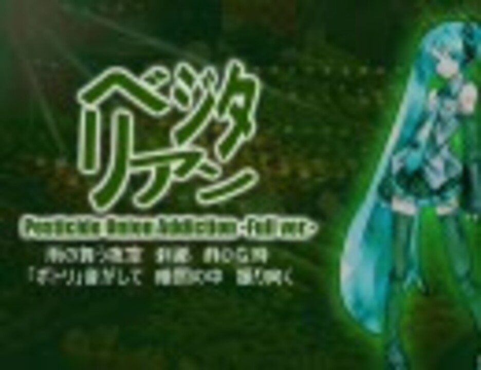 お待たせしました、野菜Fullです。基本的にはぬか床がテーマの曲です。<br />暫定版の時はDX音源+ミクのみで作ったんですが、フルは少しだけ他の音源も使いました。<br />ところで、キュウリって雌花に受粉しなくても実ができるらしいですね。<br />ということは、キュウリを擬人化したらとんでもないことになりそうですね。<br />※歌ってみた支援!<a href="https://www.nicovideo.jp/watch/sm2261790" class="watch">sm2261790</a> <a href="https://www.nicovideo.jp/watch/sm2268339" class="watch">sm2268339</a> <a href="https://www.nicovideo.jp/watch/sm2271808" class="watch">sm2271808</a> <a href="https://www.nicovideo.jp/watch/sm2274386" class="watch">sm2274386</a> <a href="https://www.nicovideo.jp/watch/sm2806759" class="watch">sm2806759</a> <a href="https://www.nicovideo.jp/watch/sm2888565" class="watch">sm2888565</a><br /><br />※カラオケ→<a href="https://commons.nicovideo.jp/works/nc42341" target="_blank" rel="noopener">nc42341</a><br />■マイリス <a href="https://www.nicovideo.jp/mylist/3390381" target="_blank" rel="noopener">mylist/3390381</a>