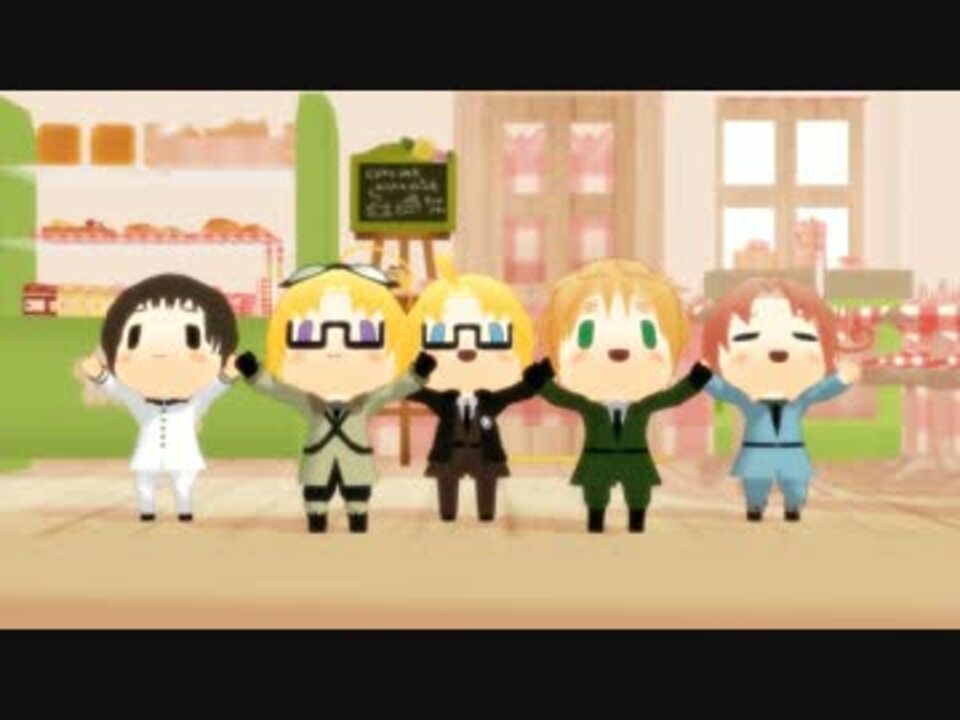 可愛すぎるモーションを好きなメンバーに踊ってもらいました^^<br />モーションほんのちょっと改変させて頂いてます。<br />お借りしたものは動画内に記載させて頂きました。<br /><br /><br />今までの→<a href="https://www.nicovideo.jp/mylist/40115478" target="_blank" rel="noopener">mylist/40115478</a><br /><br />パン屋で踊ってる?>はい、設定とかは特にないのですがステージが可愛すぎて使わせて頂きました!<br />なぜパン屋さんにいるのかは謎ですがメリカがお腹を空かせても大丈夫ですね!<br />モデル>自作モデルです!動画が完成してみたら思ったより破綻してて直せなかったのが悔やまれます(-_-;)<br />どうしてMMD上でこれに気付けないのか…!<br />