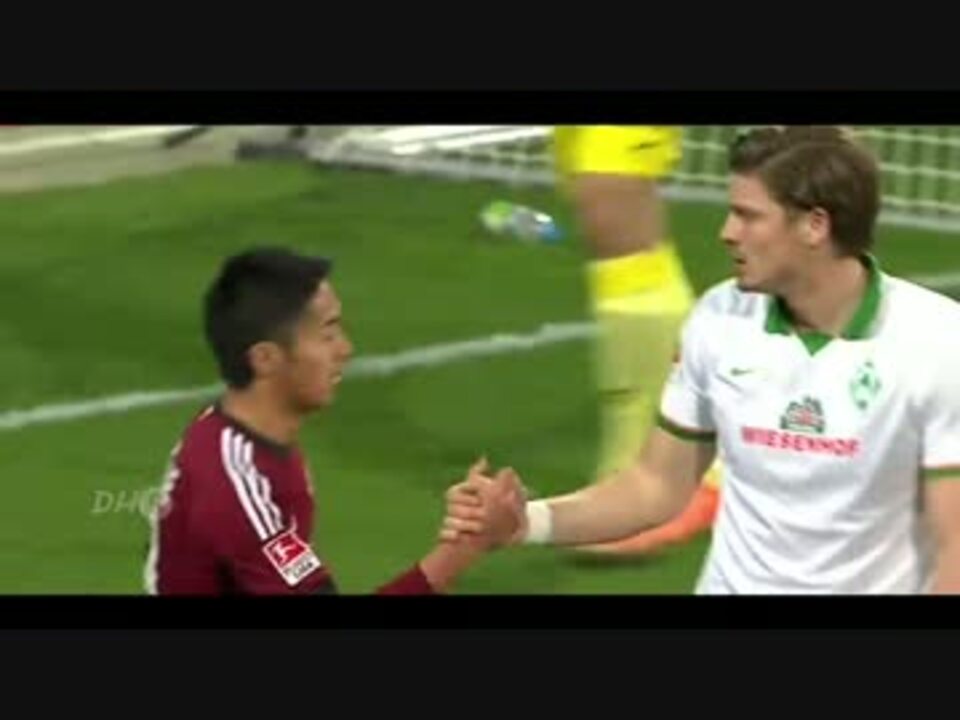 3/11 試合後interviewに投コメにて要約追加<br /><br />フェアプレーの件で話題になっているのでupしました。<br />結果を投稿者コメに書かないでと言われたので白文字へ。<br />見たい人はマウス操作で文字反転願います。<br />【Scorer】<br /><font color="#f4f4f4">[Bremen]<br />Franco di Santo(1st 40min.)<br />Philipp Bargfrede(2nd 23min.)</font><br />【Total Score】<font color="#f4f4f4"><br />0-2<br /><br /></font>この試合で、ニュルンベルクの清武弘嗣とブレーメンのアーロン・ハント両名のFair Playに賛辞が送られています。<br /><a href="#" class="seekTime" data-seekTime="01:22" onclick="seekNicoPlayer('#01:22'); return false;">#01:22</a> 審判は最初CKを指したが、ブレードルがカットしたボールが清武に当ったと清武自らすぐに認め、ゴールキックとなったシーン<br /><a href="#" class="seekTime" data-seekTime="07:00" onclick="seekNicoPlayer('#07:00'); return false;">#07:00</a> ハントがピノラに接触したとしてPK獲得するも、ハントは自ら接触はなかったと申告しPK取消シーン