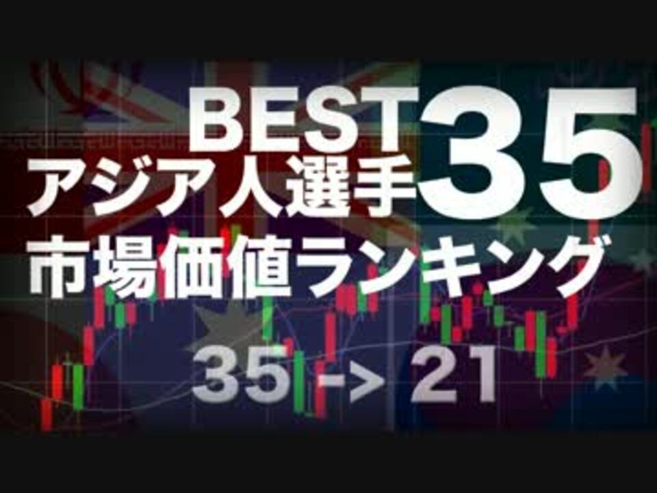 ■全3編<br />前編(35位→21位):ココ<br />中編(20位→7位):<a href="https://www.nicovideo.jp/watch/sm23093277" class="watch">sm23093277</a><br />後編(6位→1位+おまけ):<a href="https://www.nicovideo.jp/watch/sm23096230" class="watch">sm23096230</a><br /><br />・サッカー選手の市場価値をランキング形式にしました。<br />・今回はAFC加盟国選手かつ2,000,000€以上の市場価値がある選手を対象にしています。<br />・動画内にある情報の正確性を保証いたしませんので、あくまで参考程度に捉えて頂けると幸いです。<br />・動画の容量の関係と製作スピードの関係でいくつか分割して投稿していきますので、気軽に楽しめる方はおすすめです。<br />(参照サイト:<a href="http://www.transfermarkt.co.uk/en/)" target="_blank" rel="noopener nofollow">http://www.transfermarkt.co.uk/en/)</a><br /><br /><font color="red">追記:2014/03/14 19:00</font><br />コメント指摘ありがとうございます。<br />タイトル修正致しました。<br />