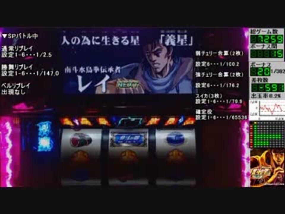 ねんがんのSPバトルを手に入れたぞ!<br />果たして早くもラオウ昇天なるか?<br />(北斗揃いなら継続率77.7%固定、それ以外からなら継続率80or90%)<br /><br />目標<br />1.ラオウ昇天<br />2.神拳勝舞でのユダ出現<br />3.勝舞玉33個出現<br />4.RESULTでのTOTAL9999表記<br /><br />BGM別途うpしました:<a href="https://www.nicovideo.jp/watch/sm23136060" class="watch">sm23136060</a><br /><br /><br />↓この機種の細かい仕様等はこちらにて<br /><a href="http://www.manmai.jp/6/hokutotensei-index.html" target="_blank" rel="noopener nofollow">http://www.manmai.jp/6/hokutotensei-index.html</a><br /><br /><br />前→<a href="https://www.nicovideo.jp/watch/sm23117949" class="watch">sm23117949</a> 次→<a href="https://www.nicovideo.jp/watch/sm23145089" class="watch">sm23145089</a><br /><br />北斗転生→<a href="https://www.nicovideo.jp/mylist/42106314" target="_blank" rel="noopener">mylist/42106314</a><br />他機種配信→<a href="https://www.nicovideo.jp/mylist/35692283" target="_blank" rel="noopener">mylist/35692283</a>