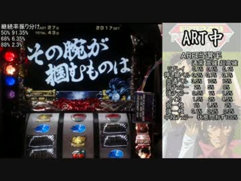 一ヶ月ぶりの初投稿です<br /><br />目標:フリーズ(通常時・BIG中・REG中)<br /> ED<br /> 青カットインでARMS図柄を揃える→part6で達成<br /> 咆哮アタック<br /> 3桁上乗せ→part6で達成<br /><br />PROJECT ARMSマイリスト <a href="https://www.nicovideo.jp/mylist/39753030" target="_blank" rel="noopener">mylist/39753030</a><br />鮪伝説マイリスト <a href="https://www.nicovideo.jp/mylist/38705128" target="_blank" rel="noopener">mylist/38705128</a><br />政宗マイリスト <a href="https://www.nicovideo.jp/mylist/37088886" target="_blank" rel="noopener">mylist/37088886</a><br />コミュニティ co1988375<br /><br />青7BIG Go Heaven! <a href="https://www.nicovideo.jp/watch/sm22527854" class="watch">sm22527854</a><br />赤7BIG Get ARMS! <a href="https://www.nicovideo.jp/watch/sm22528054" class="watch">sm22528054</a><br /><a href="https://www.nicovideo.jp/watch/sm22928376" class="watch">sm22928376</a>←前回 次回→<a href="https://www.nicovideo.jp/watch/sm23266369" class="watch">sm23266369</a> <br /><br /><br />