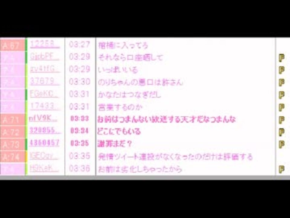 <a href="https://live.nicovideo.jp/watch/lv178066996" target="_blank" rel="noopener">lv178066996</a><br /><br />BANされた放送 <br /><a href="#" class="seekTime" data-seekTime="11:06" onclick="seekNicoPlayer('#11:06'); return false;">#11:06</a>~リモ <br /> <br />いきなりBANされて驚かれています