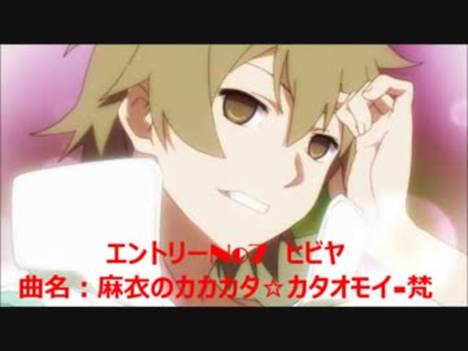 n番煎じです!メカクシ団のメンバー+ケンジロウとヒヨリを含む中の人メドレーになります。私の独断で選んだのと、持ち歌が少ない声優さんもおられましたので、他の動画様と選曲が被っているかもしれませんがそこは温かい目で見守ってやってください…!あと、キドの中の人の曲は残念ながら見つからなかったので今回はアジトでお休みという事にさせて頂きます…!その他注意事項などは動画冒頭をご覧ください。□追記(14/05/16)カテラン入りありがとうございます。そして動画が重いようで本当に申し訳ないです…!第2回できました!→<a href="https://www.nicovideo.jp/watch/sm23882544" class="watch">sm23882544</a>