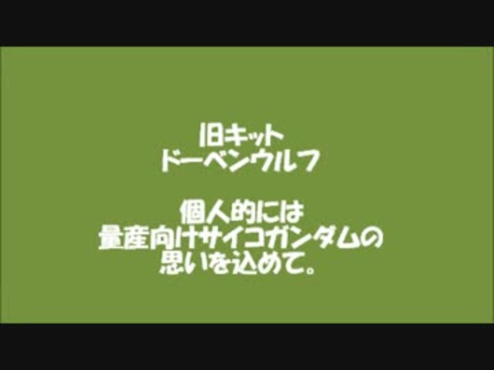 30年くらい前に購入してそのままにしていた旧キットのドーベンウルフです。<br />サイコガンダムの量産型がドーベンウルフになるという気分で作ってます。<br />カラーリングは主に緑と黒の部分を逆にして、筆塗しています。<br />ディジェのようなものはこちら<a href="http://www.nicovideo.jp/watch/sm23688705" target="_blank" rel="noopener nofollow">http://www.nicovideo.jp/watch/sm23688705</a><br />ヅダ完成動画はこちら<a href="http://www.nicovideo.jp/watch/sm23383284" target="_blank" rel="noopener nofollow">http://www.nicovideo.jp/watch/sm23383284</a><br />ハンブラビはこちら<a href="http://www.nicovideo.jp/watch/sm22934777" target="_blank" rel="noopener nofollow">http://www.nicovideo.jp/watch/sm22934777</a><br />1/100エルガイムMk-Ⅱはこちら<a href="http://www.nicovideo.jp/watch/sm22690247" target="_blank" rel="noopener nofollow">http://www.nicovideo.jp/watch/sm22690247</a><br />