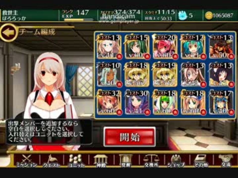 いつもの金以下です。<br />ラストのテミスはおとなしくヒーラーおいたほうが楽にクリアできるはず。最近ヒーラーに甘え過ぎだったのであえて3を目指してみました。<br />いつものパターンだと二週間イベの前半ラストは銀以下が出てる感じですが、そこはプロに任せる方針><<br /><br />初めて金↑ソルをCCさせてみましたが、意外に使い勝手がよさそうですね...序盤のギリギリ感がかなり緩和されました~<br /><br />追記:ラストのテミスさんは実はただの避雷針なので適当な位置に置けば良かったりします。また、この動画では王子が生き残ってますが、HPの残りによってはでかマミー削って撤退→遠距離でとどめでもいけます。(というか当初そのつもりでした)<br /><br />今イベの動画はこちら→<a href="https://www.nicovideo.jp/mylist/44964753" target="_blank" rel="noopener">mylist/44964753</a>