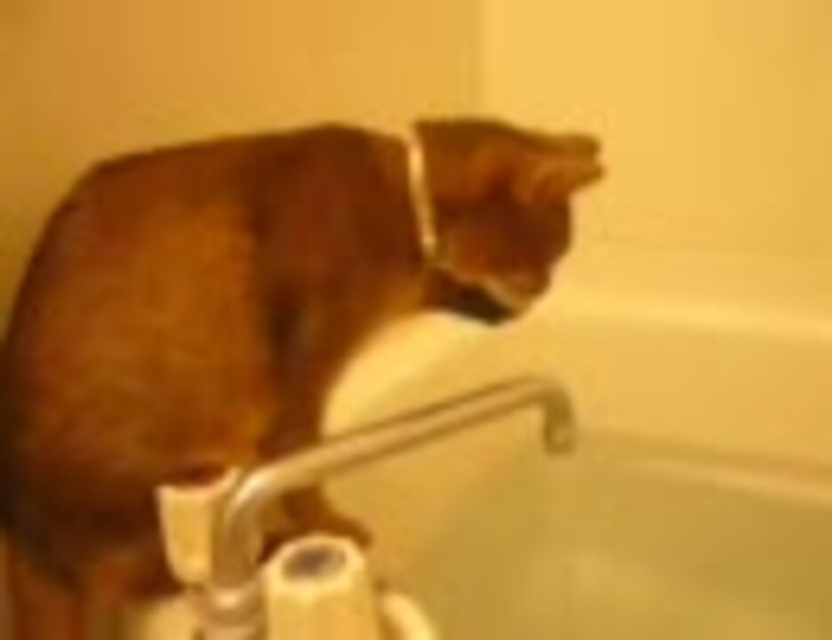 お湯加減を確かめる猫