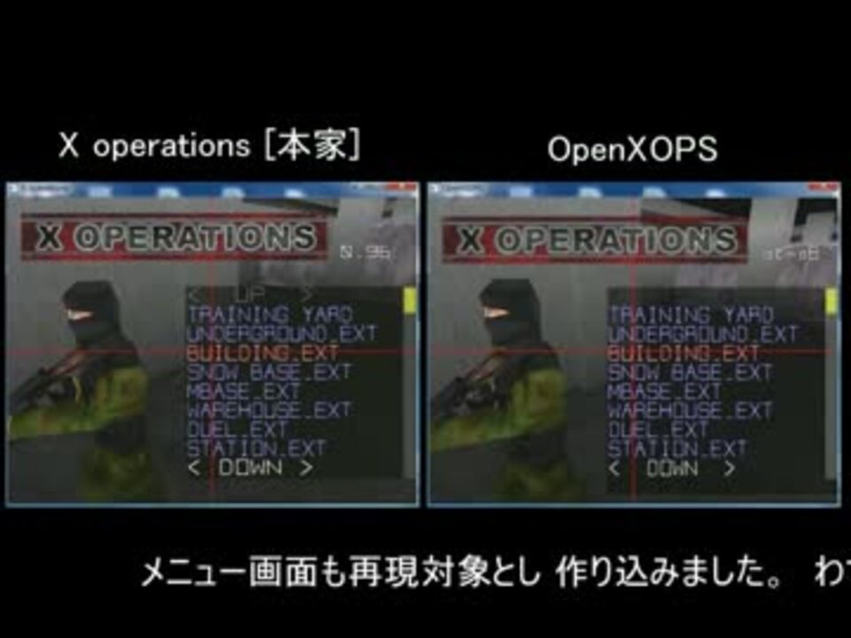 無料FPSゲーム「X operations」(XOPS)をリメイクして、オープンソースとして公開するプロジェクトです。 詳細は、下記の「OpenXOPS公式サイト」をご覧ください。<br />何を間違えたか、動画の読み込みが非常に重いかもしれません。ごめんなさい。<br />【OpenXOPSデモ:<a href="#" class="seekTime" data-seekTime="1:05" onclick="seekNicoPlayer('#1:05'); return false;">#1:05</a>、技術部っぽい説明:<a href="#" class="seekTime" data-seekTime="4:43" onclick="seekNicoPlayer('#4:43'); return false;">#4:43</a>、おまけ:<a href="#" class="seekTime" data-seekTime="6:56" onclick="seekNicoPlayer('#6:56'); return false;">#6:56</a>】<br />お借りしたBGM:<a href="https://www.nicovideo.jp/watch/nm4365960" class="watch">nm4365960</a>・<a href="https://www.nicovideo.jp/watch/sm3604366" class="watch">sm3604366</a>・<a href="https://www.nicovideo.jp/watch/sm486315" class="watch">sm486315</a>・<a href="https://www.nicovideo.jp/watch/sm5508956" class="watch">sm5508956</a>・<a href="https://www.nicovideo.jp/watch/sm190235" class="watch">sm190235</a><br />X operationsを作られたteam MITEIのnine-twoさんとTENNKUUさん、このプロジェクトを応援して頂いている全ての方々に感謝いたします。<br /><br />OpenXOPS公式サイト <a href="http://openxops.net/" target="_blank" rel="noopener nofollow">http://openxops.net/</a><br /><br />初めての方も久しぶりの方も、この週末はX operationsをやり込んでみては?<br /><br /><b>2015年1月10日 ソースコードを公開しました</b><br /><br />
