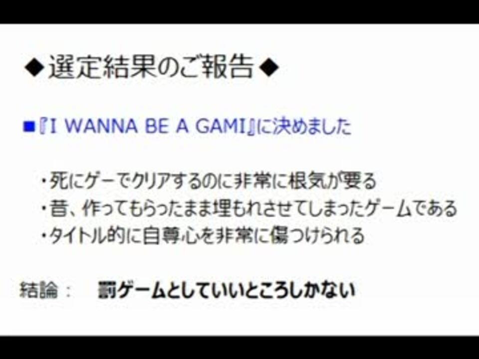 ◆I WANNA BE A GAMI 実況プレイ◆選定結果のご報告