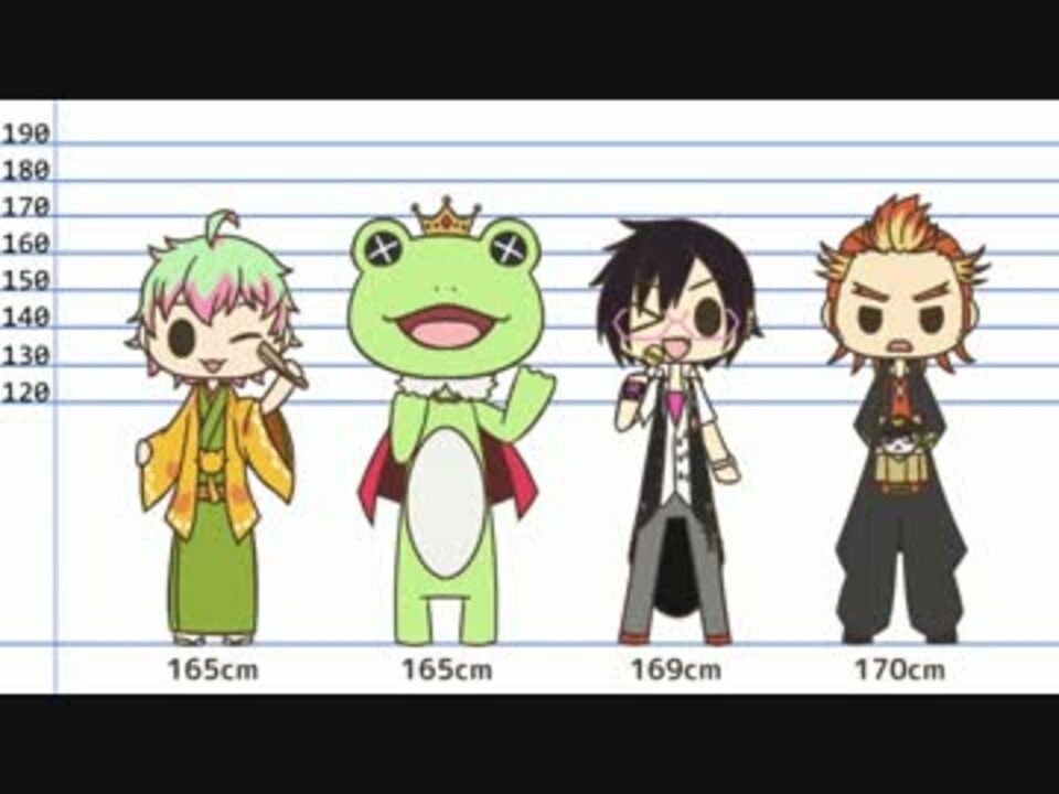 <font color="red">※初期アイドル40人のデータで作成した動画です。</font>いつか最新verを作りたい。<br />▼追加<br />大吾 160cm、52kg / 涼 164cm、54kg / 九十九 178cm、64kg<br />想楽 174cm、62kg / クリス 187cm、58kg / 雨彦 191cm、74kg<br /><br />▼カード絵を並べるより同じ比率で並んでた方が解りやすいかなって…<br />改めて眺めてへぇーって思ったりビックリしたり、2828してもらえれば幸いです<br />※大画面(not フルスクリーン)で見るとキレイに見れるはず<br /><br />▼誕生日・年齢順→<a href="https://www.nicovideo.jp/watch/sm24795485" class="watch">sm24795485</a> 血液型・利き手・出身地別→<a href="https://www.nicovideo.jp/watch/sm24900331" class="watch">sm24900331</a><br />▼ベル315→<a href="https://www.nicovideo.jp/watch/sm25790949" class="watch">sm25790949</a> <a href="https://www.nicovideo.jp/mylist/32692379" target="_blank" rel="noopener">mylist/32692379</a><br /><br />※転載禁止