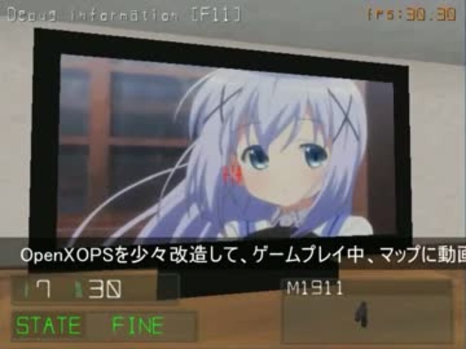 OpenXOPSを改造して、ゲーム画面内にアニメを流してみました。<br />OpenXOPSとは、無料FPSゲーム X operations(XOPS)をリメイクして、オープンソースとして公開するプロジェクトです。<br />詳細は、下記の「OpenXOPS公式サイト」をご覧ください。<br />お借りした動画:<a href="https://www.nicovideo.jp/watch/sm23525707" class="watch">sm23525707</a>・<a href="https://www.nicovideo.jp/watch/sm982882" class="watch">sm982882</a> お借りしたBGM:<a href="https://www.nicovideo.jp/watch/sm486315" class="watch">sm486315</a>・<a href="https://www.nicovideo.jp/watch/nm4659904" class="watch">nm4659904</a>・<a href="https://www.nicovideo.jp/watch/sm8172501" class="watch">sm8172501</a><br />X operationsを作られたteam MITEIのnine-twoさんとTENNKUUさん、このプロジェクトを応援して頂いている全ての方々に感謝いたします。<br /><br />OpenXOPS公式サイト <a href="http://openxops.net/" target="_blank" rel="noopener nofollow">http://openxops.net/</a><br />OpenXOPS関連動画 <a href="https://www.nicovideo.jp/mylist/45332233" target="_blank" rel="noopener">mylist/45332233</a><br /><br /><b>2015年1月10日 ソースコードを公開しました</b><br /> ※アニメが出る仕様ではありません。<br /><br />