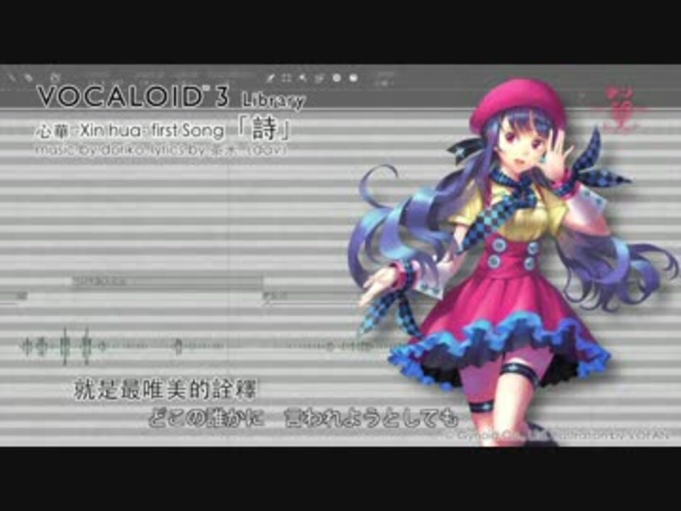 さぁ、奏でよう。<br />VOCALOID ™ 3 Library 心華<br />日本で作られ、台湾で誕生した初めての台湾女性の中国語歌声ライブラリによる初めての詩。<br /><br />VOCALOID(TM) 3 Library 「心華」 First Song<br />タイトル:詩<br />作曲:doriko <br /><a href="http://www.nicovideo.jp/mylist/4586898" target="_blank" rel="noopener nofollow">http://www.nicovideo.jp/mylist/4586898</a><br /> <a href="http://doriko.jp/" target="_blank" rel="noopener nofollow">http://doriko.jp/</a><br />作詞:茶米(dav)<br />編曲:Linia<br />Voice Programing:惟(ゆい)、よみ<br />Illustration by VOFAN<br /><br />公式サイト:<a href="http://www.xin-hua.tw" target="_blank" rel="noopener nofollow">http://www.xin-hua.tw</a><br />Facebook:<a href="https://www.facebook.com/pages/V-XinHua/815136028543466" target="_blank" rel="noopener nofollow">https://www.facebook.com/pages/V-XinHua/815136028543466</a><br />