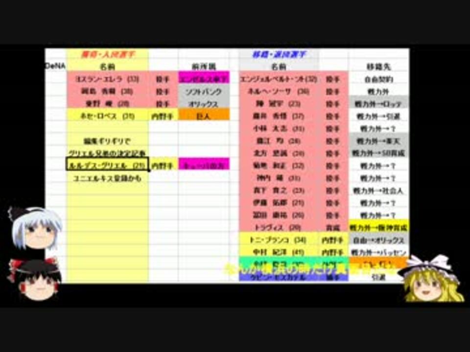 初めましての方はハジメマシテ、新人山田です。<br /><br />最近、友人の影響で野球をよく見るようになったので、なったついでに動画も作ってみました。<br />本動画では、2014シーズンの簡単なチーム成績と、おそらく最新(1/30現在)であろう補強情報をまとめてあります。<br />各項目を偉そうに採点しておりますが、私ニワカなので大雑把です。ご了承ください。<br />いちスポーツファンとして、少しでも多くの方と色んな楽しみ方を共有できればと思います。<br />グリエル兄弟面倒くさすぎるんじゃ!さっさと正式な発表せえや!でも期待してます!悔しいビクンビクンッ<br /><br />ゆっくり実況とか色々上げてます。たまーに。<br />【新人山田】投稿動画一覧→(<a href="https://www.nicovideo.jp/mylist/39656559" target="_blank" rel="noopener">mylist/39656559</a>)