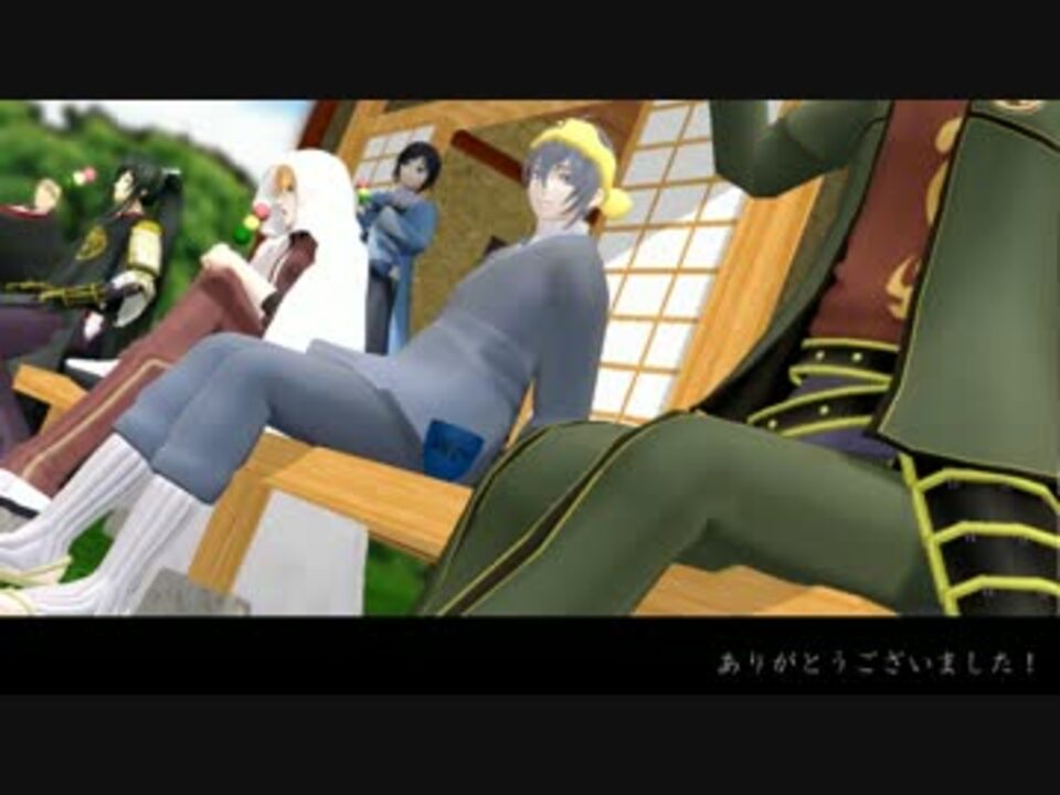 <b>審神者「前回<a href="https://www.nicovideo.jp/watch/sm25593536" class="watch">sm25593536</a>を公開したところ鶯がやってきたので、より楽しげな未公開映像を発表し残る3人の出現意欲を高めます」<br />堀川「(動画編集の)お手伝いなら任せて!」</b><br />※※※裾の長いお洋服や武具・防具・装飾品をつけたままの走行は大変危険です※※※<br />内番服の子は撮影手伝いか他の内番の合間に遊びに来た、通常服の子は非番で暇だから遊びにきた、いない子は遠征行ってるみたな感じです。<br /><br /><a href="https://www.nicovideo.jp/watch/sm12059295" class="watch">sm12059295</a>の一部をトレスしました<br />腐コメ・過剰な萌えコメ等はご遠慮ください<br />お借りしたものは動画内とツリーにて<br />マイリス <a href="https://www.nicovideo.jp/mylist/45455417" target="_blank" rel="noopener">mylist/45455417</a><br /><br />追記:GoseはGoesのミスです!すいません!!<br />宣伝ありがとうございます!