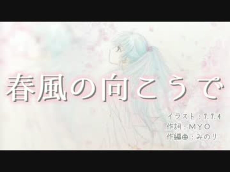 <b><font color="#ff99ff">~ 春風の向こうで ~</font></b><br /><br />UP主の周りにはまだ雪が残っていますが、<br />ピアプロコラボ春曲です!<br /><br />○イラスト:7.7.4 (<a href="https://www.nicovideo.jp/mylist/41597117" target="_blank" rel="noopener">mylist/41597117</a>)<br /> ・twitter:@7474nanashi<br /><br />○作詞:MYO (<a href="https://www.nicovideo.jp/mylist/38210282" target="_blank" rel="noopener">mylist/38210282</a> )<br /> ・twitter:@utamitasuki <br /> ・歌詞:<a href="http://piapro.jp/t/05vc" target="_blank" rel="noopener nofollow">http://piapro.jp/t/05vc</a><br /> ・ピアプロ:<a href="http://piapro.jp/utamitasuki" target="_blank" rel="noopener nofollow">http://piapro.jp/utamitasuki</a><br /><br />○作編曲&動画:みの梨 (<a href="https://www.nicovideo.jp/mylist/41853335" target="_blank" rel="noopener">mylist/41853335</a>)<br /> ・twitter:@minoritakanabe<br /><br />お借りしたフォント:02うつくし明朝体,ふい字P,るりいろフォント<br /><br />オフボ → <a href="http://piapro.jp/t/jB20" target="_blank" rel="noopener nofollow">http://piapro.jp/t/jB20</a><br />☆前作→【初音ミク】散花烈伝【オリジナル】(<a href="https://www.nicovideo.jp/watch/sm25717678" class="watch">sm25717678</a>)<br />