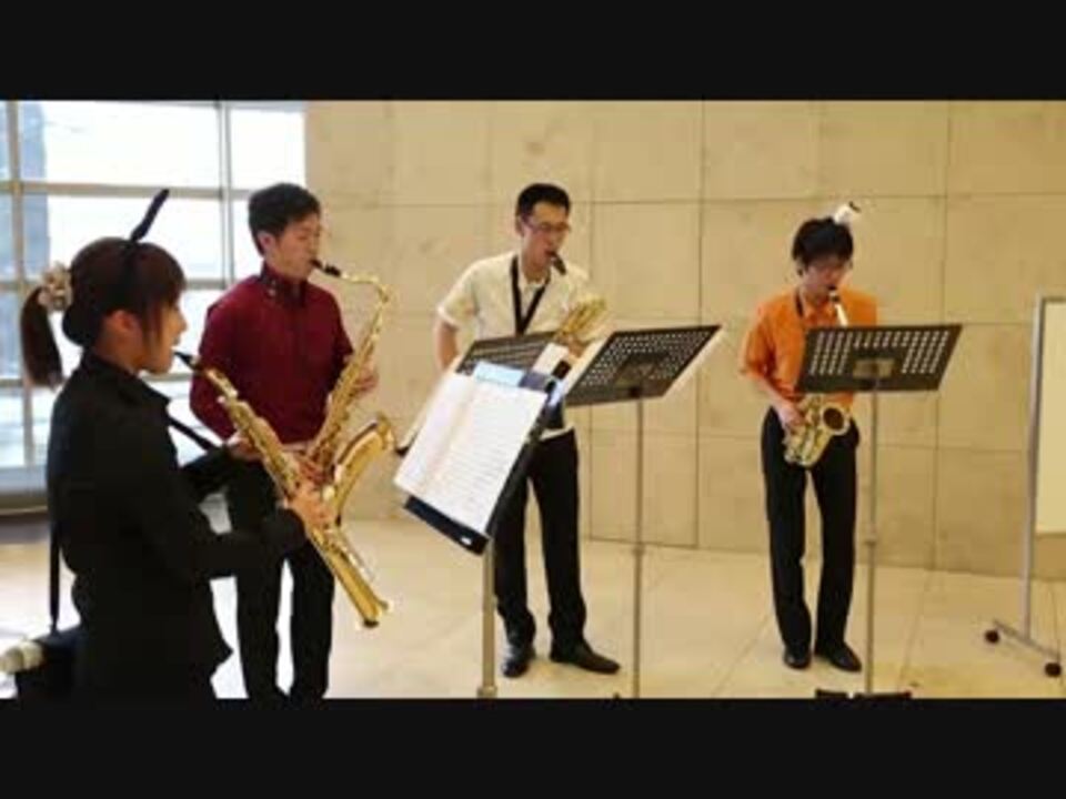2014年5月6日、八王子オリンパスホールにて開催された<br />演奏してみたクラスタによるリアル演奏会"NicoNicoPrimaPop"<br />その片隅でひっそりと演奏された、しかし当人たちには最大難易度だった(かもしれない)<br />サックスカルテットの模様を公開いたします。<br /><br />ニコニコメドレーの元祖、組曲『ニコニコ動画』(<a href="https://www.nicovideo.jp/watch/sm500873" class="watch">sm500873</a>)を<br />親愛なるKohMei氏による素敵な編曲でお届けいたします。<br /><br />なお、録音・録画は生演奏現地一発録りの簡易なものなのと<br />あくまでお祭り騒ぎの一端なので、生温い目で見てあげてください。<br /><br />Niconico Prima Pop公式サイト:<a href="http://www.niconicoprimapop.com/" target="_blank" rel="noopener nofollow">http://www.niconicoprimapop.com/</a><br />演奏会全体のダイジェスト動画:<a href="https://www.nicovideo.jp/watch/sm25209973" class="watch">sm25209973</a><br />KohMei氏による渾身の鬼畜譜面:<a href="https://www.nicovideo.jp/watch/sm844848" class="watch">sm844848</a><br />