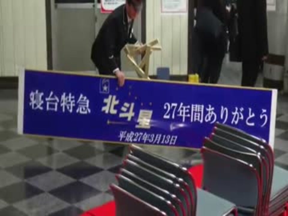 寝台特急北斗星ラストラン上野駅13番線で起きたまとめ<br />・上野駅13番線が世紀末過ぎて機動隊が出動する事態に<br />・18:30より佐々木氏を偲ぶ会開催<br />・5秒で強制終了、盛り上がりの余韻を残したまま主催者連行<br />・主催者を偲ぶ会が開催<br />・何故かごちうさのチノちゃんのプラカードを上げる人物が出現<br />・入線時の罵声ははくたか、北越、トワイライトに対する感謝<br />・脚立を使うなと注意されても使っていた撮り鉄が逮捕されたらしい。<br />・謎の佐々木コール<br />・窓に野獣先輩のステッカーが貼られる<br />