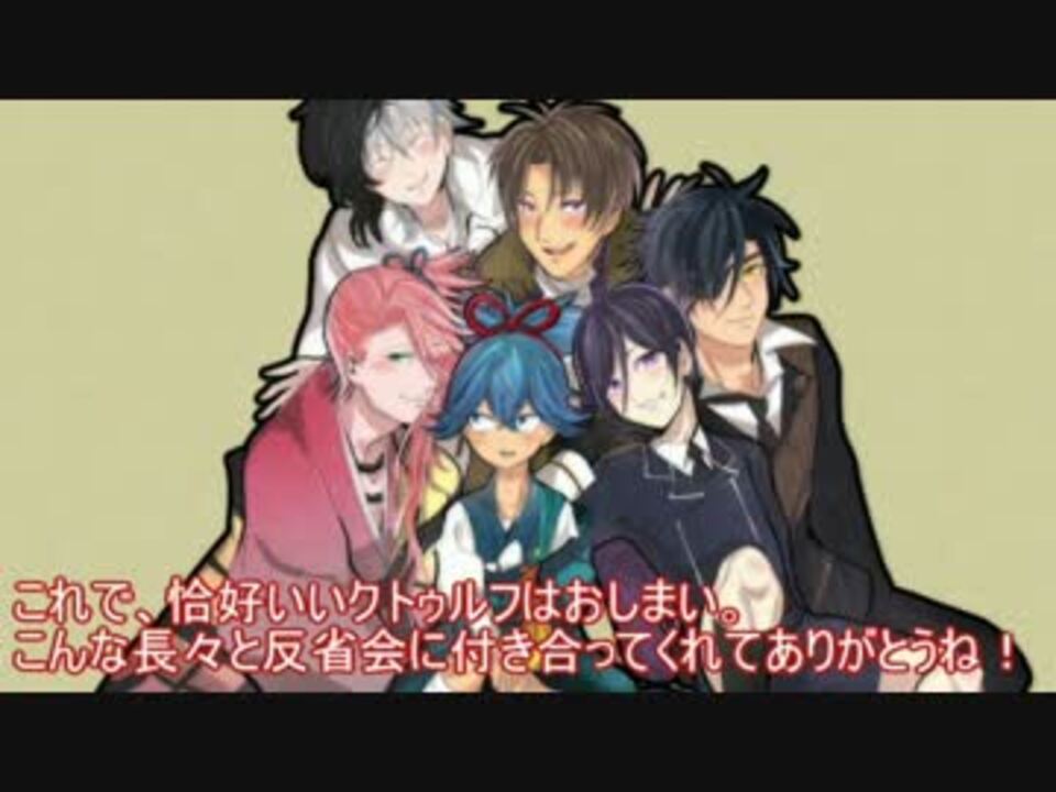 <b>注意!完結した動画の反省会になります。これだけを見てもなんのこっちゃわかりません!</b><br /><a href="https://www.nicovideo.jp/watch/sm26258839" class="watch">sm26258839</a>←前 <a href="https://www.nicovideo.jp/mylist/49526784" target="_blank" rel="noopener">mylist/49526784</a> おまけ→<a href="https://www.nicovideo.jp/watch/sm26291251" class="watch">sm26291251</a><br /><br />これにて恰好いいクトゥルフはおしまいです。<br />コメント、マイリス、ニコる、つぶやき、いつも励みになりました。嬉しかったです! <br /><br />江雪左文字様、黒丸国永様、軽トラ様、ダイスの女神様、<br />本編でも大活躍だというのに、宣伝恐縮です…!<br />山城の審神者様<br />短刀恰好いいですよね!ありがとうございます。<br /><br />ツイッター<a href="https://twitter.com/keimi200002あんまり呟いていませんが…覗いてくれる方がいれば" target="_blank" rel="noopener nofollow">https://twitter.com/keimi200002あんまり呟いていませんが…覗いてくれる方がいれば</a>、するようになるかもしれません。あはは(´▽`)<br /><br />ちなみに、こんのすけのあれはそれであってます。トラウマ。<br /><a href="https://seiga.nicovideo.jp/seiga/im4910317" target="_blank" rel="noopener">im4910317</a>