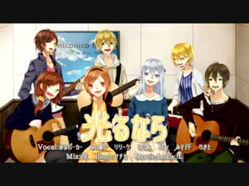 <br /><br /><br /><font size="2" color="#808080"><b>「四月は君の嘘」のOPとなった、大好きな、Goose houseさんの『光るなら』を歌いました。with ~niconico house~</b></font><br /><br /><font size="4" color="#ffa500"><b>ほら 今だ ここ(ニコニコ)で 光るなら</b></font><br /><br /><br /><br />♦MIX:淳(<a href="https://www.nicovideo.jp/mylist/44324219" target="_blank" rel="noopener">mylist/44324219</a>)<br /><br />♦絵:サチカ(@sachika_km)<br /><br />♦動画:Luka:iL(<a href="https://www.nicovideo.jp/mylist/38318356" target="_blank" rel="noopener">mylist/38318356</a>)<br /><br /><br />♦歌:<br /><br />あるパーカー(<a href="https://www.nicovideo.jp/mylist/37879645" target="_blank" rel="noopener">mylist/37879645</a>)<br />にこあ(<a href="https://www.nicovideo.jp/mylist/37196380" target="_blank" rel="noopener">mylist/37196380</a>)<br />みぃぬこ(<a href="https://www.nicovideo.jp/mylist/32941943" target="_blank" rel="noopener">mylist/32941943</a>)<br />みそ汗(<a href="https://www.nicovideo.jp/mylist/38457322" target="_blank" rel="noopener">mylist/38457322</a>)<br />Ry(<a href="https://www.nicovideo.jp/mylist/50524981" target="_blank" rel="noopener">mylist/50524981</a>)<br />りきと(<a href="https://www.nicovideo.jp/mylist/42791773" target="_blank" rel="noopener">mylist/42791773</a>)<br />リリーク(<a href="https://www.nicovideo.jp/mylist/36813631" target="_blank" rel="noopener">mylist/36813631</a>)<br /><br /><br /><br />niconico house 作品達【<a href="https://www.nicovideo.jp/mylist/54776419" target="_blank" rel="noopener">mylist/54776419</a>】<br /><br />