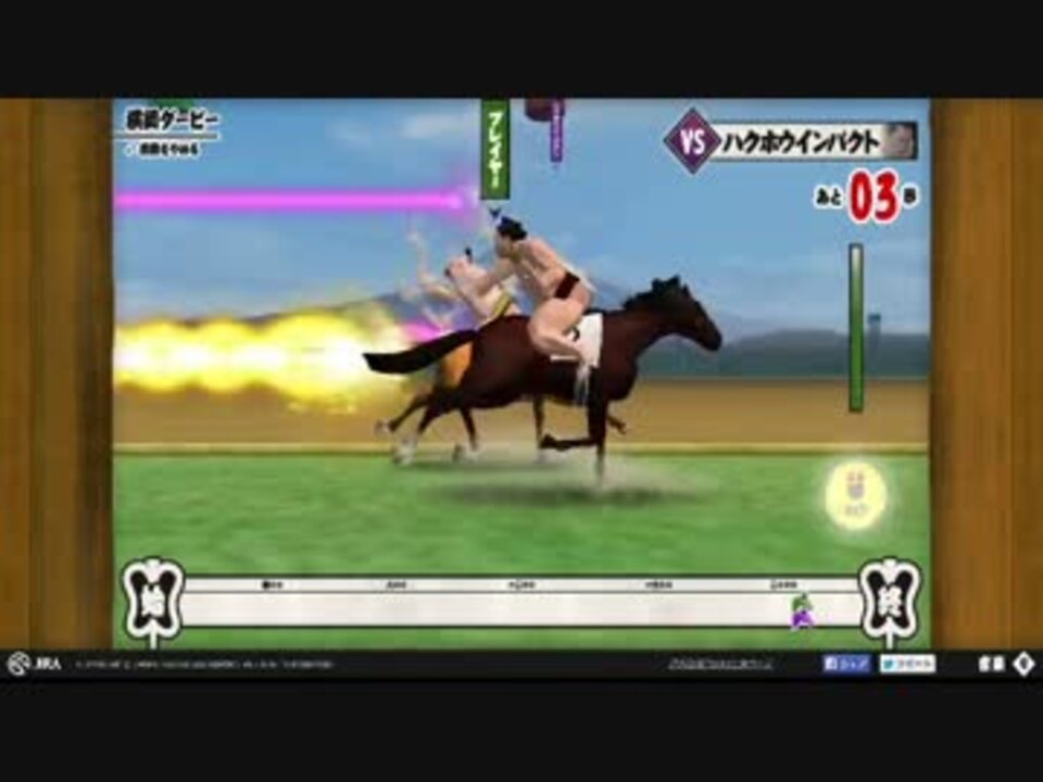 まさにSUMOU… <br />ちなみに、プレイヤーのイメージはコ●助 <br /><a href="https://sumouderby.jp/pc/" target="_blank" rel="noopener nofollow">https://sumouderby.jp/pc/</a> <br />追記、音量高めなので注意してください <br /> <br />5/26スモウダービー・追加はまさかのロボコップ><a href="https://www.nicovideo.jp/watch/sm26344064" class="watch">sm26344064</a> <br />5/28追加・・・相手…でかすぎwマケボノではないよ強いよつ<a href="https://www.nicovideo.jp/watch/sm26360580" class="watch">sm26360580</a> <br />追記2…コメで気がついた・・・あんな隠しがあったとはwww 本家の画面でcrt+Uを押すと・・・wwwww <br />追記3・・・皆様ダービーいかがでしたでしょうか?日本スモウダービーは <br />6/1までの公開ですので、まだの方はお早めに。この動画は残しておきます <br />え?自分の予想結果?岩田ぁぁぁぁぁぁぁぁぁぁああああああ!!(お察しください