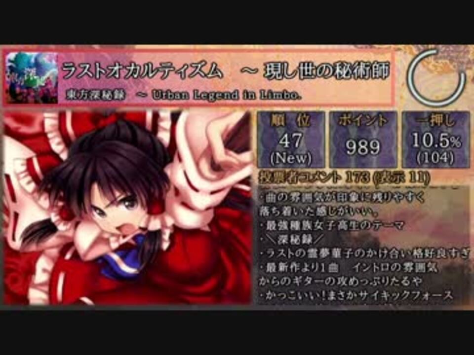 | 番号 | 総合順位 | ポイント | ジャンル順位 | カテゴリ | 再生順位 | 再生数 | コメント順位 | コメント数 | マイリスト順位 | マイリスト数 | いいね順位 | いいね数 |