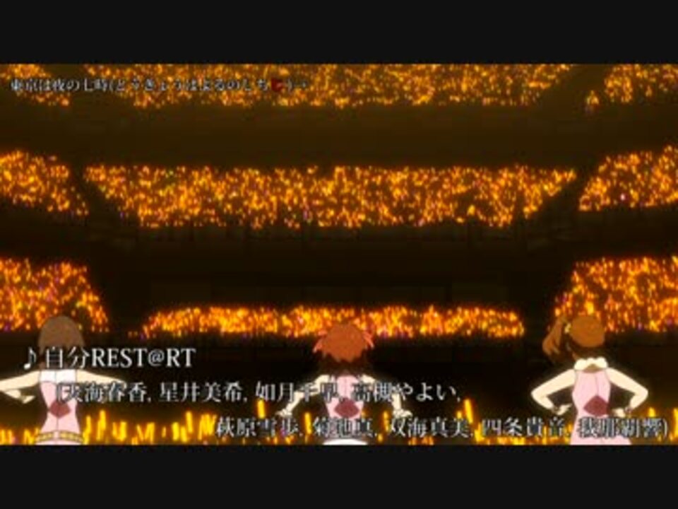曲目でしりとりしながら繋げてみました。<br />・濁音、半濁音などは考えなくてよい<br />・記号や読めない文字は一つ前の文字で繋ぐ<br />・『ん』が最後についてた場合もひとつ前で繋ぐ <font color="#ff0000"><br /> ※しりとりではアウトですが曲数の関係で今回は有りにします</font><br />・アルファベット・英語表記は読みでつないでもスペルで繋いでも良い<br /> 例:CHANGE!!!!→ 「ちぇんじ」の「じ」or「し」or「E」<br />・その他やや強引な繋ぎも有りますが許してね<br />対象の楽曲はアイマス関係なら何でもあり(カバー曲含む)ですが、自分の持っているCDの中から選曲している関係で多少の偏りがありますがご容赦下さい。<br /><br />10th記念に初めてメドレー動画を作ってみたので良かったら次の曲を予想してみてね。