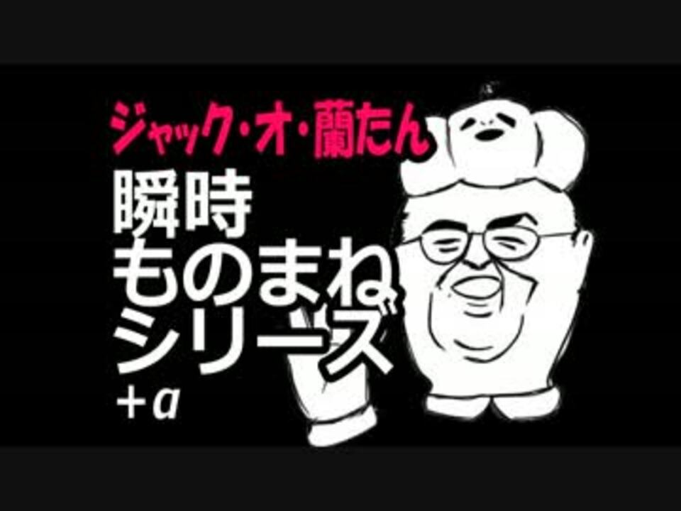上級者向けかもしれません。今更ですが8年目おめでとうございます。<br />■追記:こんなに多くの方の目に触れるとは思っていなかったので説明が不足していました。<br />・自分用に作ったので雑な仕上がり。<br />・題名を"瞬時ものまね"としていますがそれ以外のものも有る。<br />・蘭たんさんの全ての動画内のものまねがあるわけではなく、<br /> 岩男や最近のもの中心。<br />・以上を踏まえた上で広い心で見てくださると嬉しいです。<br />次長課長さんのネタやミノルさんのモノマネはこちらの知識不足です。すみません。<br />■本人巡回、宣伝ありがとうございます!<br /><br />【ジャック・オ・蘭たんさんのマイリスト】<br />part1集その①→<a href="https://www.nicovideo.jp/mylist/28086326" target="_blank" rel="noopener">mylist/28086326</a> ②→<a href="https://www.nicovideo.jp/mylist/39115582" target="_blank" rel="noopener">mylist/39115582</a> 単発→<a href="https://www.nicovideo.jp/mylist/16728379" target="_blank" rel="noopener">mylist/16728379</a><br />Twitter→@puchohenzaa