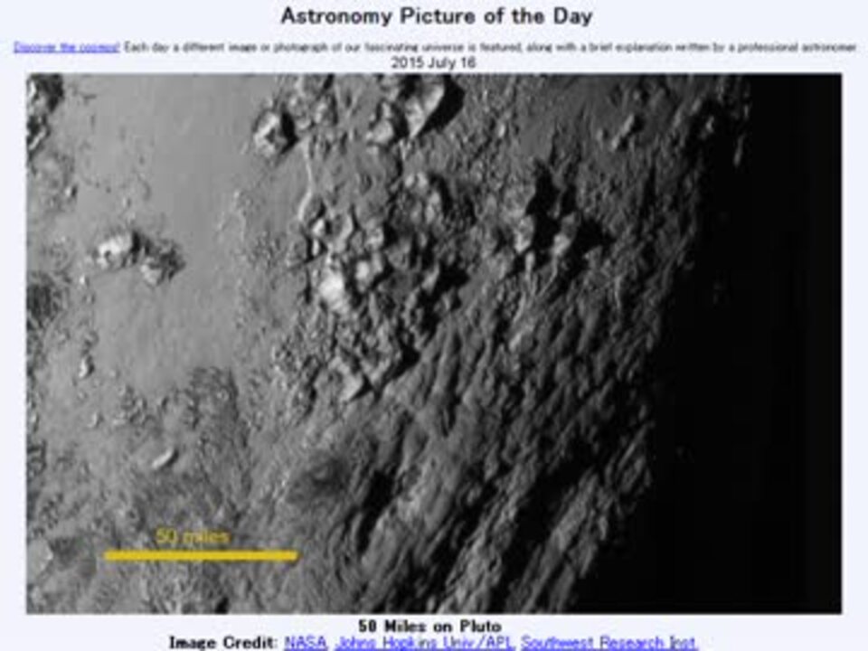 <b>2015年 7月16日 Astronomy Picture of the Day<br />50 Miles on Pluto 「冥王星の80km」</b><br /><br />APODとはNASAの天文学者が、毎日天文に関する画像に説明を添えて公開しているサイトです。<br />英語の勉強に読んでます。間違いがあれば指摘頂けると嬉しいです。<br /><br /><b>美しい写真と原文</b><br /><a href="http://apod.nasa.gov/apod/ap150716.html" target="_blank" rel="noopener nofollow">http://apod.nasa.gov/apod/ap150716.html</a><br /><b>お借りした音源</b><br /><a href="https://commons.nicovideo.jp/works/nc104442" target="_blank" rel="noopener">nc104442</a>「Ama Neko」 by SOUNDORBIS<br /><br />APODreadingマイリスト <a href="https://www.nicovideo.jp/mylist/32170692" target="_blank" rel="noopener">mylist/32170692</a> (<a href="https://www.nicovideo.jp/watch/sm26722561" class="watch">sm26722561</a><前日 翌日><a href="https://www.nicovideo.jp/watch/sm26745960" class="watch">sm26745960</a>)<br /><br />Twitter:Cc_jabberwock <br /><br />転載はご遠慮下さい。解らない事が有ったら気軽に聞いてみて下さい。調べてきます