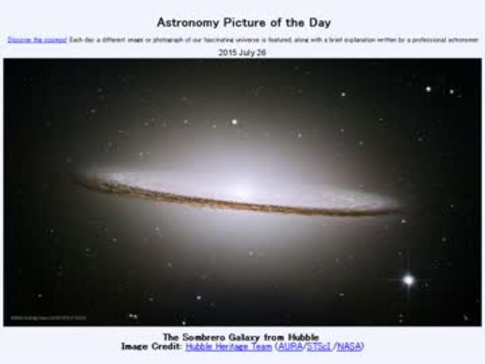 <b>2015年 7月26日 Astronomy Picture of the Day<br />The Sombrero Galaxy from Hubble 「ハッブル宇宙望遠鏡によるソンブレロ銀河」</b><br /><br />APODとはNASAの天文学者が、毎日天文に関する画像に説明を添えて公開しているサイトです。<br />英語の勉強に読んでます。間違いがあれば指摘頂けると嬉しいです。<br /><br /><b>美しい写真と原文</b><br /><a href="http://apod.nasa.gov/apod/ap150726.html" target="_blank" rel="noopener nofollow">http://apod.nasa.gov/apod/ap150726.html</a><br /><b>お借りした素材</b><br />Wikipediaより<br />Virgo IAU" by IAU and Sky & Telescope magazine<br />Flickrより<br />"virgo" by chaouki<br />"M104, The Sombrero Galaxy, or NGC 4594" by Ajay Narayanan<br />"Sombrero de charro..." by José Pestana<br /><b>お借りした音源</b><br /><a href="https://commons.nicovideo.jp/works/nc115975" target="_blank" rel="noopener">nc115975</a>「サマーサイダー」 by レンチa.k.a.工場長<br /><br />APODreadingマイリスト <a href="https://www.nicovideo.jp/mylist/32170692" target="_blank" rel="noopener">mylist/32170692</a> (<a href="https://www.nicovideo.jp/watch/sm27059641" class="watch">sm27059641</a><前日 翌日><a href="https://www.nicovideo.jp/watch/sm27110601" class="watch">sm27110601</a>)<br /><br />転載はご遠慮下さい。
