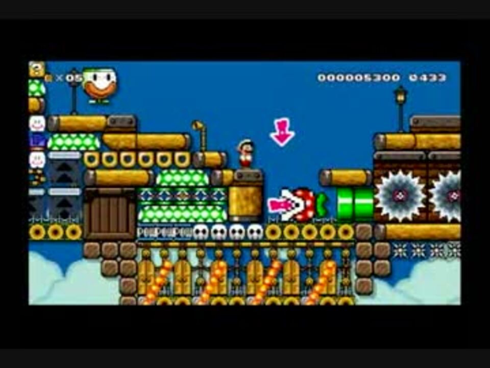 マリオメーカーでシューティングが作れないか・・・<br /><br /><font size="5"><b>そうだ、R-TYPEを作ろう。</b></font><br /><br />キガ ツク トワ タシ ハバ イド ニナ・・・(驚愕する)<br /><br /><br />今回はアイレムの「R-TYPE」から巨大戦艦「グリーンインフェルノ」を再現してみました。<br />R-9っぽい戦闘機に乗り、フォースと反射レーザーを使って進み、<br />ぐるっと回って動力源のエンジンであるパックンフラワーを倒して戦艦を沈めてください。<br /><br />コースIDは、FD1C-0000-003B-761A<br /><br />マリオメーカー開発倉庫 → <a href="https://www.nicovideo.jp/mylist/53196285" target="_blank" rel="noopener">mylist/53196285</a><br /><br />比較動画 <a href="https://www.nicovideo.jp/watch/sm27239061" class="watch">sm27239061</a><br />ダライアス <a href="https://www.nicovideo.jp/watch/sm27275626" class="watch">sm27275626</a><br />グラディウス <a href="https://www.nicovideo.jp/watch/sm27308156" class="watch">sm27308156</a><br />