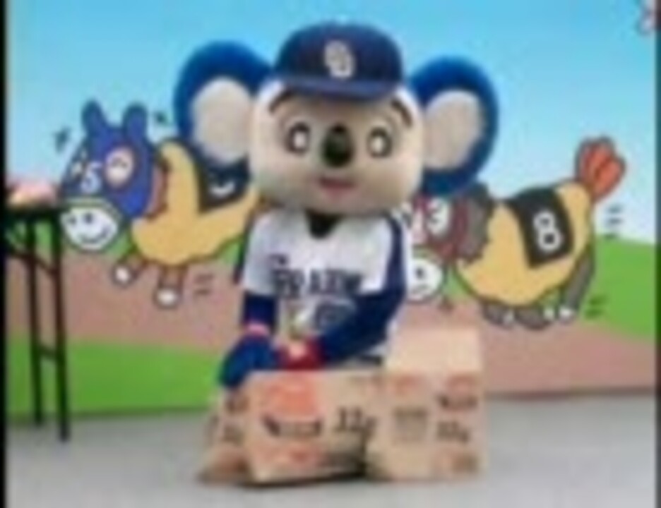 「ドアラのサインプレゼントゲーム大会」が始まる前の様子です。ジャンケンに勝つとサインをプレゼント。負けるとお菓子。そのお菓子の箱を使ってのパフォーマンスでした。ステージ前にお客が居ないのは、ゲーム大会参加の列を作っていた為です。 (同じ日に本家も競艇場でやってたみたいですw→<a href="https://www.nicovideo.jp/watch/sm2719694" class="watch">sm2719694</a>)
