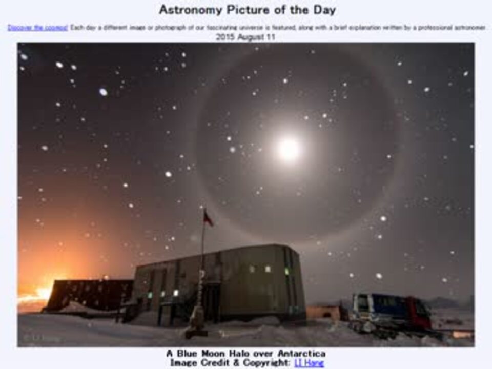 <b>2015年 8月11日 Astronomy Picture of the Day<br />A Blue Moon Halo over Antarctica 「南極の空に現れた、ブルームーンの月暈」</b><br /><br />APODとはNASAの天文学者が、毎日天文に関する画像に説明を添えて公開しているサイトです。<br />英語の勉強に読んでます。間違いがあれば指摘頂けると嬉しいです。<br /><br /><b>美しい写真と原文</b><br /><a href="http://apod.nasa.gov/apod/ap150811.html" target="_blank" rel="noopener nofollow">http://apod.nasa.gov/apod/ap150811.html</a><br /><b>お借りした素材</b><br />Wikipediaより<br />"Moon halo during conjunction with Jupiter 13.12.18B" by Radoslaw Ziomber<br />StarDateより<br />Moon Phases<br /><b>お借りした音源</b><br />Youtubeより「Snow」 by Sure Tread<br /><br />APODreadingマイリスト <a href="https://www.nicovideo.jp/mylist/32170692" target="_blank" rel="noopener">mylist/32170692</a> (<a href="https://www.nicovideo.jp/watch/sm27229199" class="watch">sm27229199</a><前日 翌日><a href="https://www.nicovideo.jp/watch/sm27255566" class="watch">sm27255566</a>)<br /><br />Twitter:Cc_jabberwock <br /><br />転載はご遠慮下さい。解らない事が有ったら気軽に聞いてみて下さい。調べてきます
