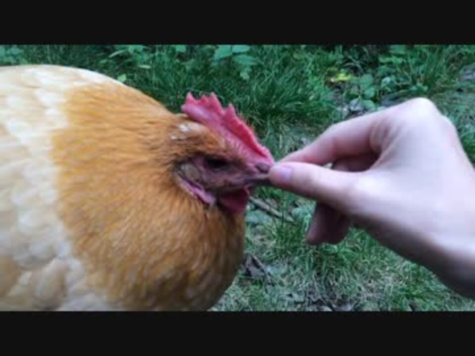 ニワトリをなでなでする