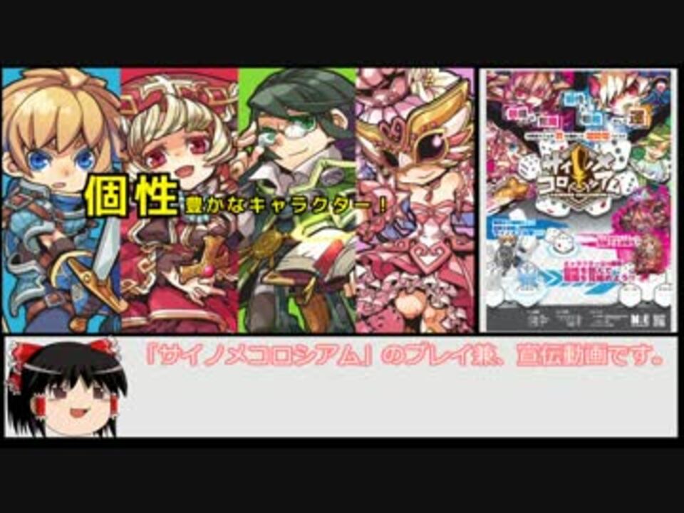 初投稿です(定型文)<br /><br />注意、この動画はアナログゲームの実写プレイにゆっくりで解説をつけたR(リアルに)T(楽しく)A(遊ぶ)動画です。<br />ゆっくりおよび生声実況が苦手な方は音声をオフにしてお楽しみください。<br />追記:ymmだと平気なのに、avutilだと何故かサイノメカードの上が切れて表示されないです…<br /><br />2015/11/22(日)に東京ビッグサイトで開催されるアナログゲームの祭典、ゲームマーケット2015秋にブース番号H36:MRエンターテイメントで参加いたします。<br />ご興味ある方はぜひ下記ページやツイッターの情報をご確認ください。<br />ゲームマーケット公式「サイノメコロシアム」のページ<br />goo.gl/STM1jn<br />新着情報などは下記MRE公式ツイッターをのぞいてみてください。<br />@MR_Entame