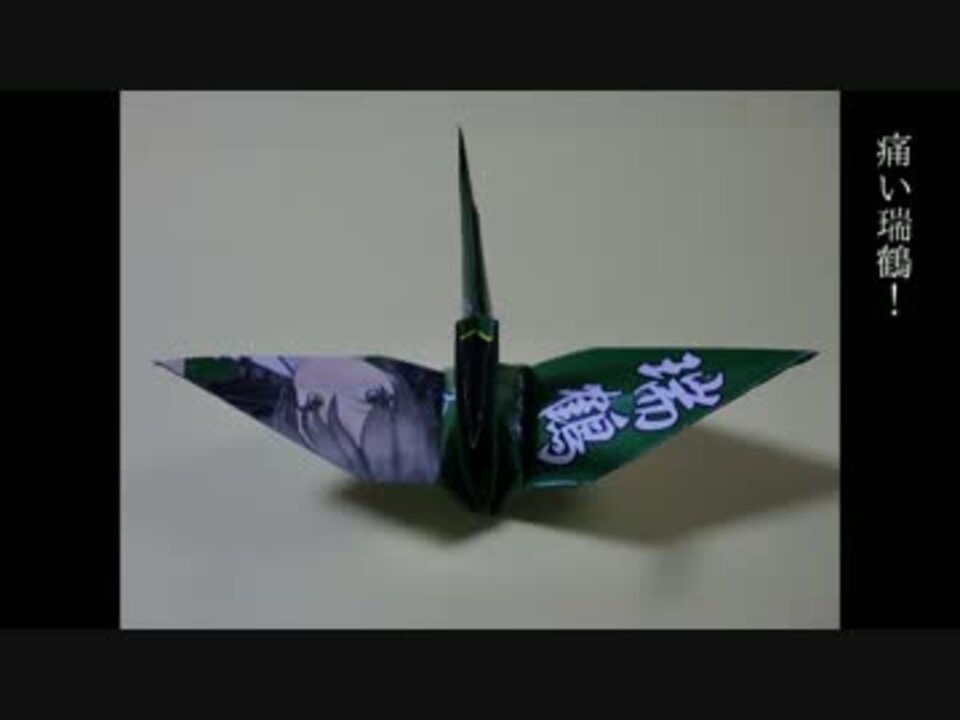 痛い折り鶴第2弾、空母瑞鶴です。鶴を折りあげると痛い瑞鶴ができあがります。PDF化したものをわたしのブログで配布していますのでよろしくどうぞ。<br /><br />ブログ(zztop2資料配布所):<a href="http://zztop2.blog.shinobi.jp/" target="_blank" rel="noopener nofollow">http://zztop2.blog.shinobi.jp/</a><br /><br />痛い瑞鶴PDFはセブン-イレブンのネットプリントでもプリントアウトできます。<br />プリント予約番号→10333223<br />2015年12月20日(日)23時59分まで印刷可能です。A4カラーだと60円です。<br /><br />拝借したものは動画の最後にまとめてあります。提供者の皆様、ほんとうにありがとう!<br /><br />痛い折り鶴「空母翔鶴」 <a href="https://www.nicovideo.jp/watch/sm27780516" class="watch">sm27780516</a><br />マイリスト <a href="https://www.nicovideo.jp/mylist/39083486" target="_blank" rel="noopener">mylist/39083486</a><br />twitter @zztop2_MMD