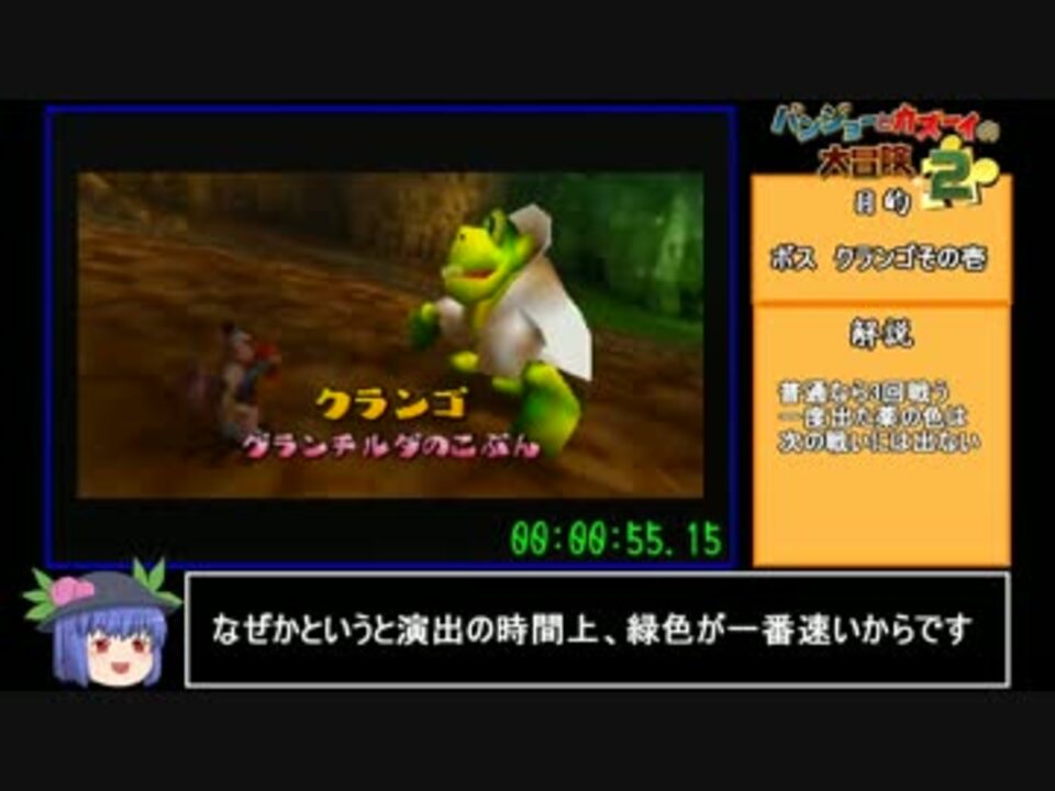久しぶりなので初投稿です<br />走者が増えるようにと作ったので淫/夢要素は控えめです<br />おまけはファイル厳選のやり方なので見たい方だけどうぞ <a href="#" class="seekTime" data-seekTime="17:20" onclick="seekNicoPlayer('#17:20'); return false;">#17:20</a><br /><br />プレイ環境<br />N64<br />純正コントローラー<br /><br />キャプボ<br />SD-USB2CUP5<br /><br />録画ソフト<br />amarectv<br /><br />レギュレーション<br />バグあり (ゲーム内)チートなし<br />ジンジョーの色を固定化するためにゲーム内ファイルを予め作成しています<br /><br />無編集版<br /><a href="https://youtu.be/SvC0Sg48qIE" target="_blank" rel="noopener nofollow">https://youtu.be/SvC0Sg48qIE</a><br /><br />計測開始~マヤヤン神殿終わりまで<br />次→<a href="https://www.nicovideo.jp/watch/sm27887207" class="watch">sm27887207</a><br />RTAマイリス <a href="https://www.nicovideo.jp/mylist/46322355" target="_blank" rel="noopener">mylist/46322355</a><br /><br />11人の方宣伝ありがとうございます<br /><br /><br />追記<br />ファイル厳選するのはそういうレギュレーションということでオナシャスセンセンシャウ<br />