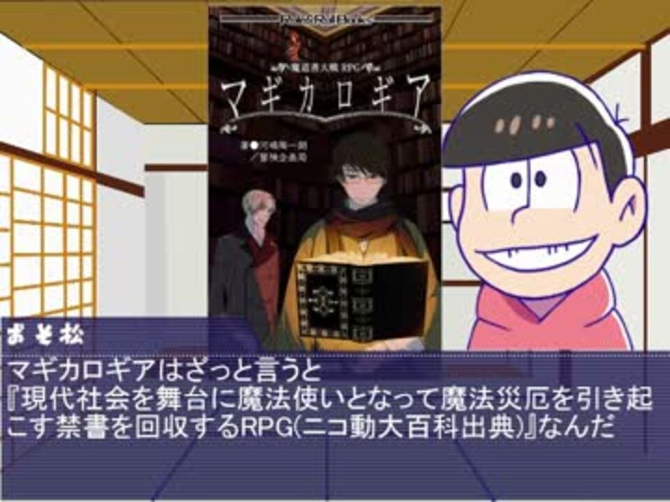 やってしまいました準備編<br />説明やら構成やらネタやらまだまだ模索中ですがよろしくお願い致します<br /><br />■マギカロギアをやっていてふと「カラ松が凄くイキイキしそうだ・・・」と思ったのが作成の切っ掛けでした<br />■「スタイリッシュに中二する」はあくまで私の持つ印象です。またあらゆるものをdisる意図は御座いません。寧ろ少しでもマギカロギアに興味を持って頂ける方が増えれば幸いです<br />■(「さん」公式ネタとはいえ)女装があるので苦手な方はご注意ください<br /><br />■どこまで解説を入れて良いか手探りした結果かなりの長さになってしまったので「もう知っている」という方は<a href="#" class="seekTime" data-seekTime="20:30" onclick="seekNicoPlayer('#20:30'); return false;">#20:30</a>の「キャラ紹介」まで飛ばして下さい(解説は一部公式リプレイを参考にさせて頂いてます)<br />■次<a href="https://www.nicovideo.jp/watch/sm27944322" class="watch">sm27944322</a>■<a href="https://www.nicovideo.jp/mylist/54385802" target="_blank" rel="noopener">mylist/54385802</a>