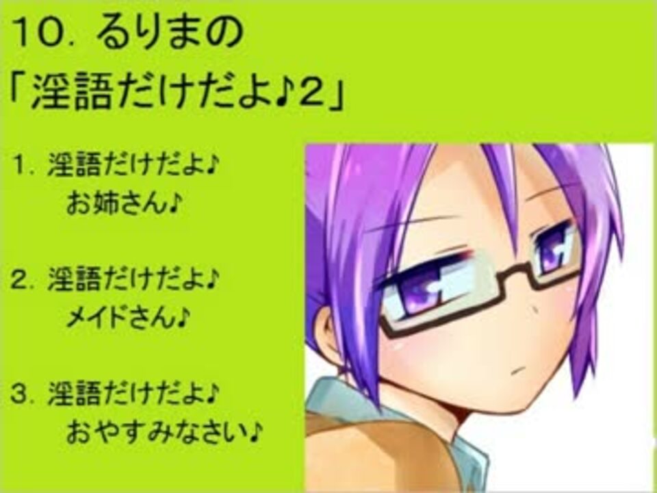 | 番号 | 総合順位 | ポイント | ジャンル順位 | カテゴリ | 再生順位 | 再生数 | コメント順位 | コメント数 | マイリスト順位 | マイリスト数 | いいね順位 | いいね数 |